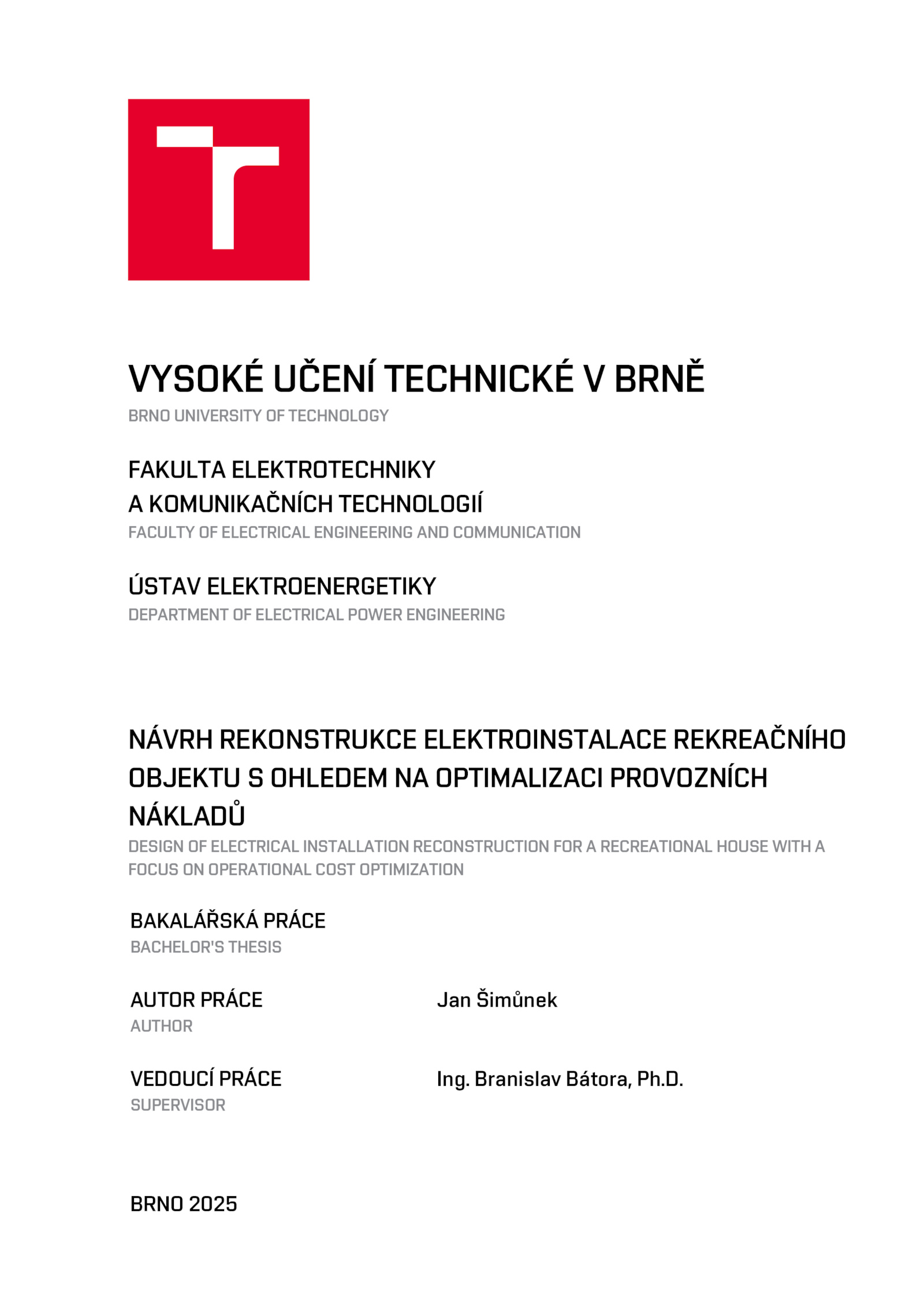NÁVRH REKONSTRUKCE ELEKTROINSTALACE REKREAČNÍHO