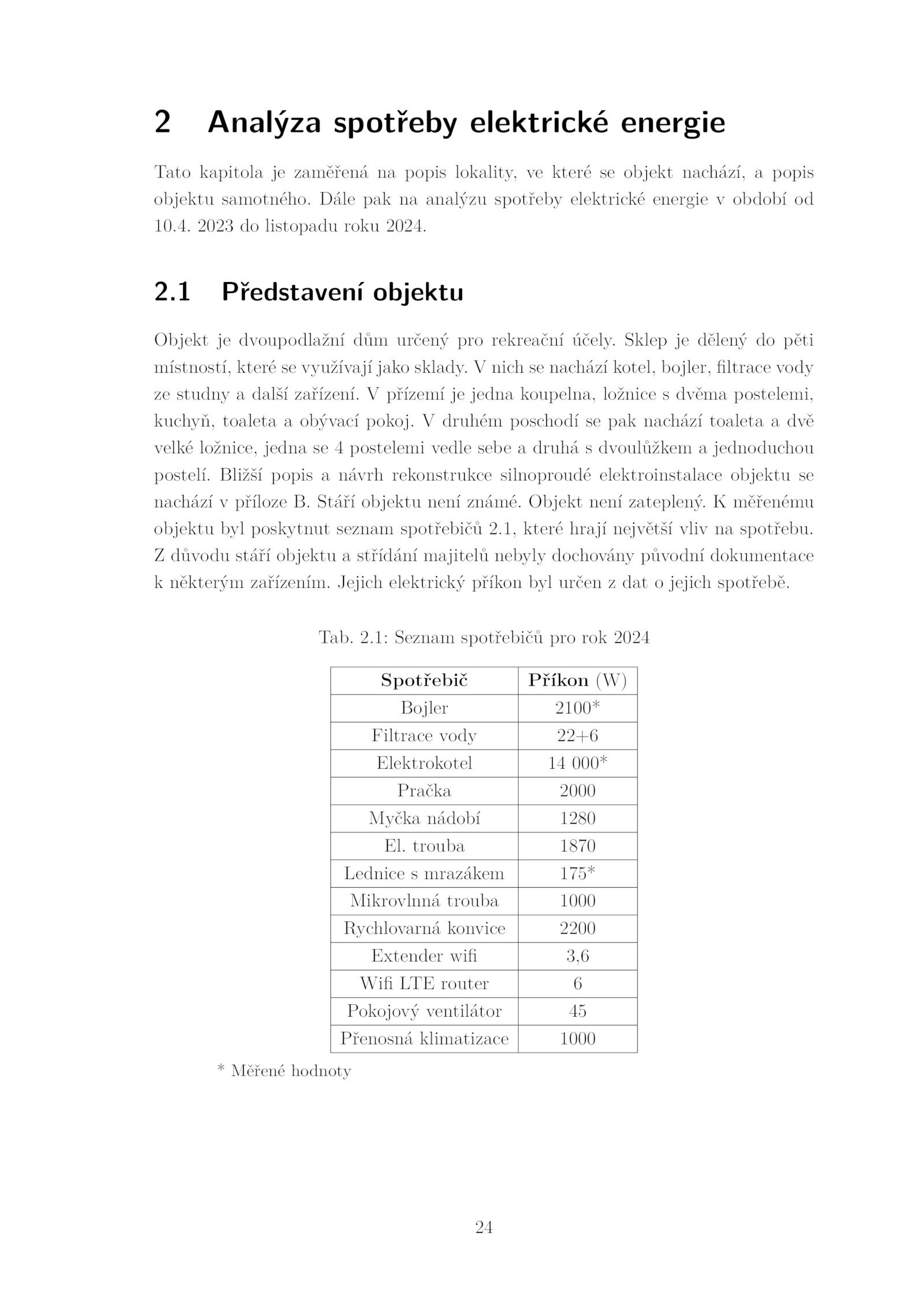 objektu byl poskytnut seznam spotřebičů 2.1 Představení objektu