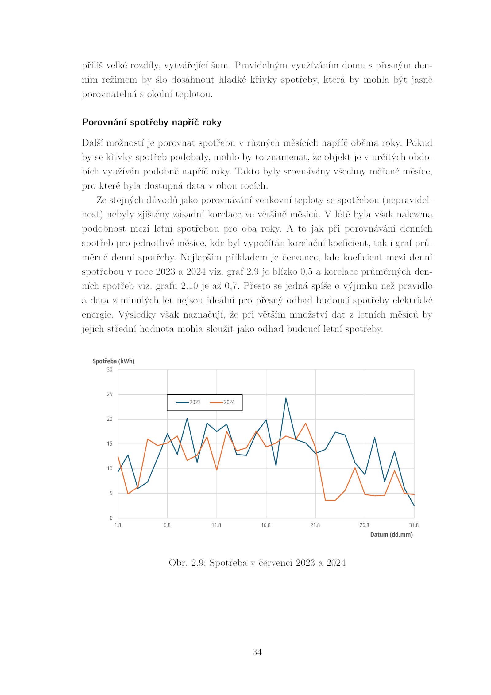 podobnost mezi letní spotřebou pro oba roky. Nejlepším příkladem červenec, kde koeficient mezi denní