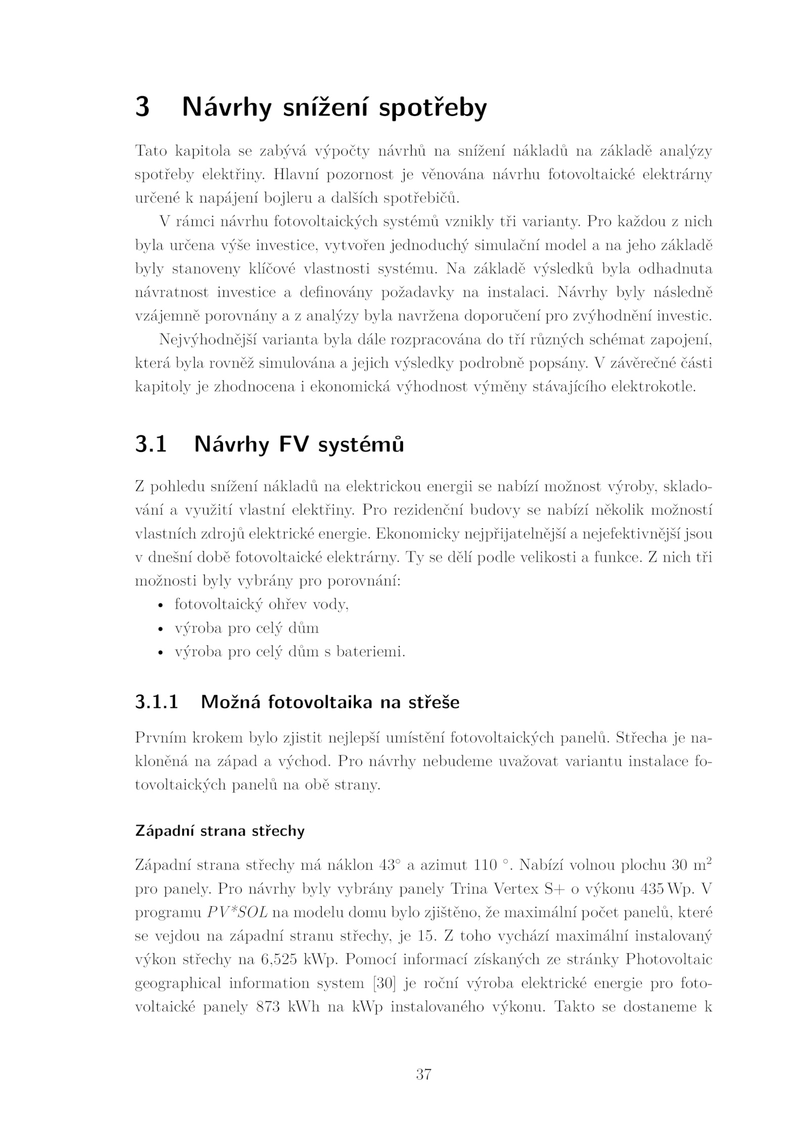 se vejdou západní stranu střechy, 15. Hlavní pozornost věnována návrhu fotovoltaické elektrárny
