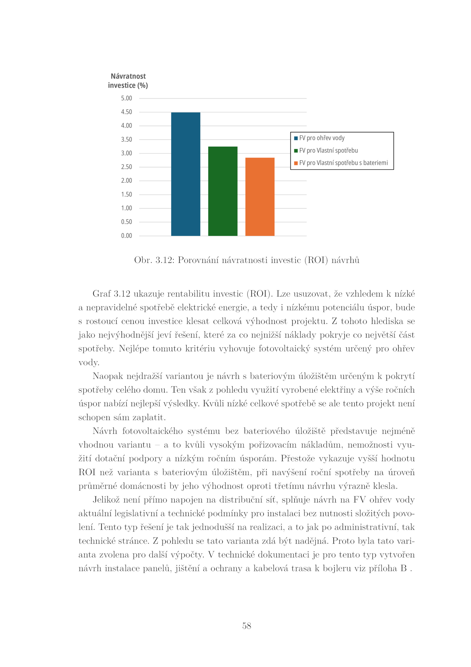 průměrné domácnosti jeho výhodnost oproti třetímu návrhu výrazně klesla.12: Porovnání návratnosti investic (ROI) návrhů