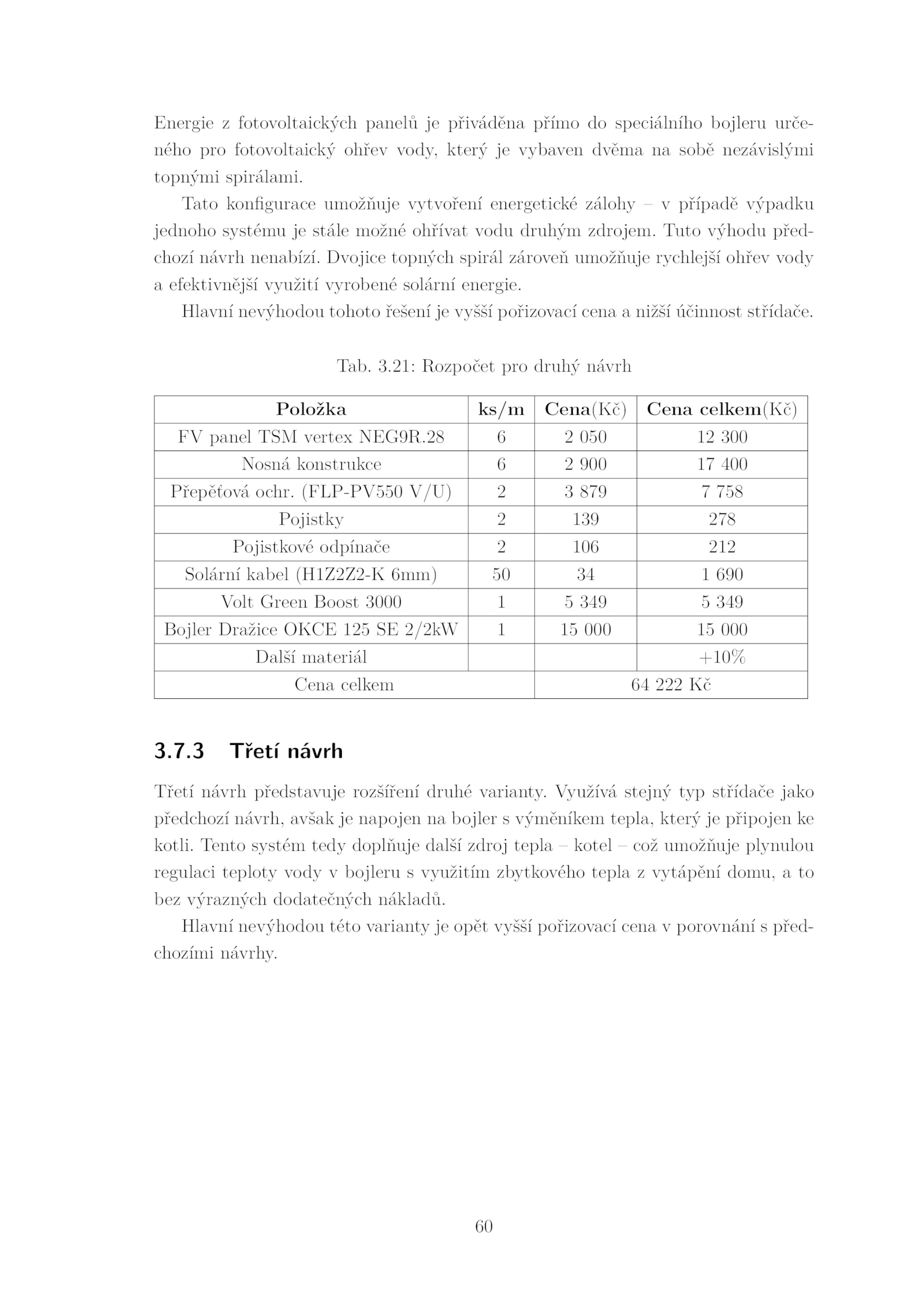 Tab.21: Rozpočet pro druhý návrh