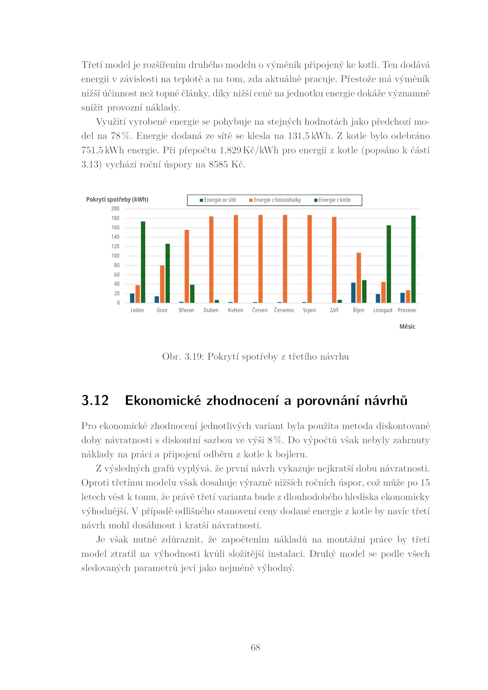 Z výsledných grafů vyplývá, první návrh vykazuje nejkratší dobu návratnosti.Třetí model rozšířením druhého modelu výměník připojený kotli. kotle bylo odebráno