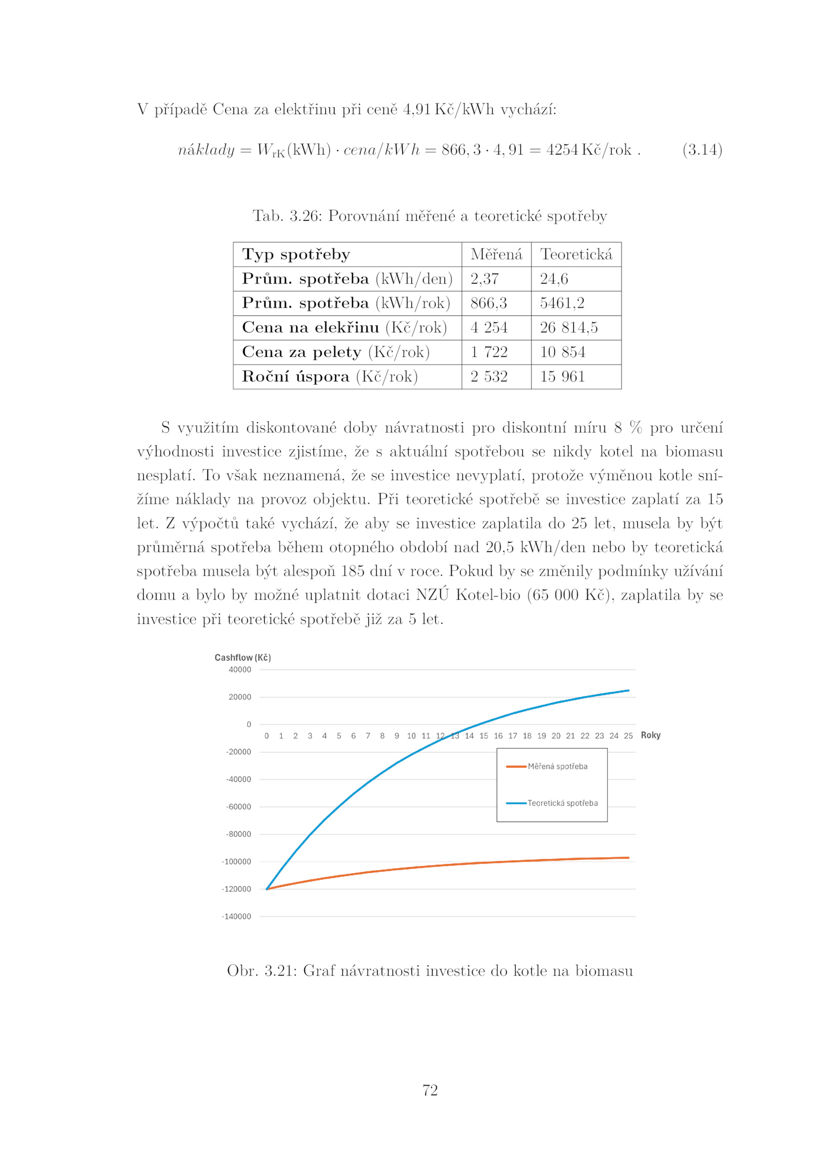 𝑛á𝑘𝑙𝑎𝑑𝑦 𝑊rK(kWh) 𝑐𝑒𝑛𝑎/𝑘𝑊ℎ 866, 4254 Kč/rok (3. 3.26: Porovnání měřené teoretické spotřeby