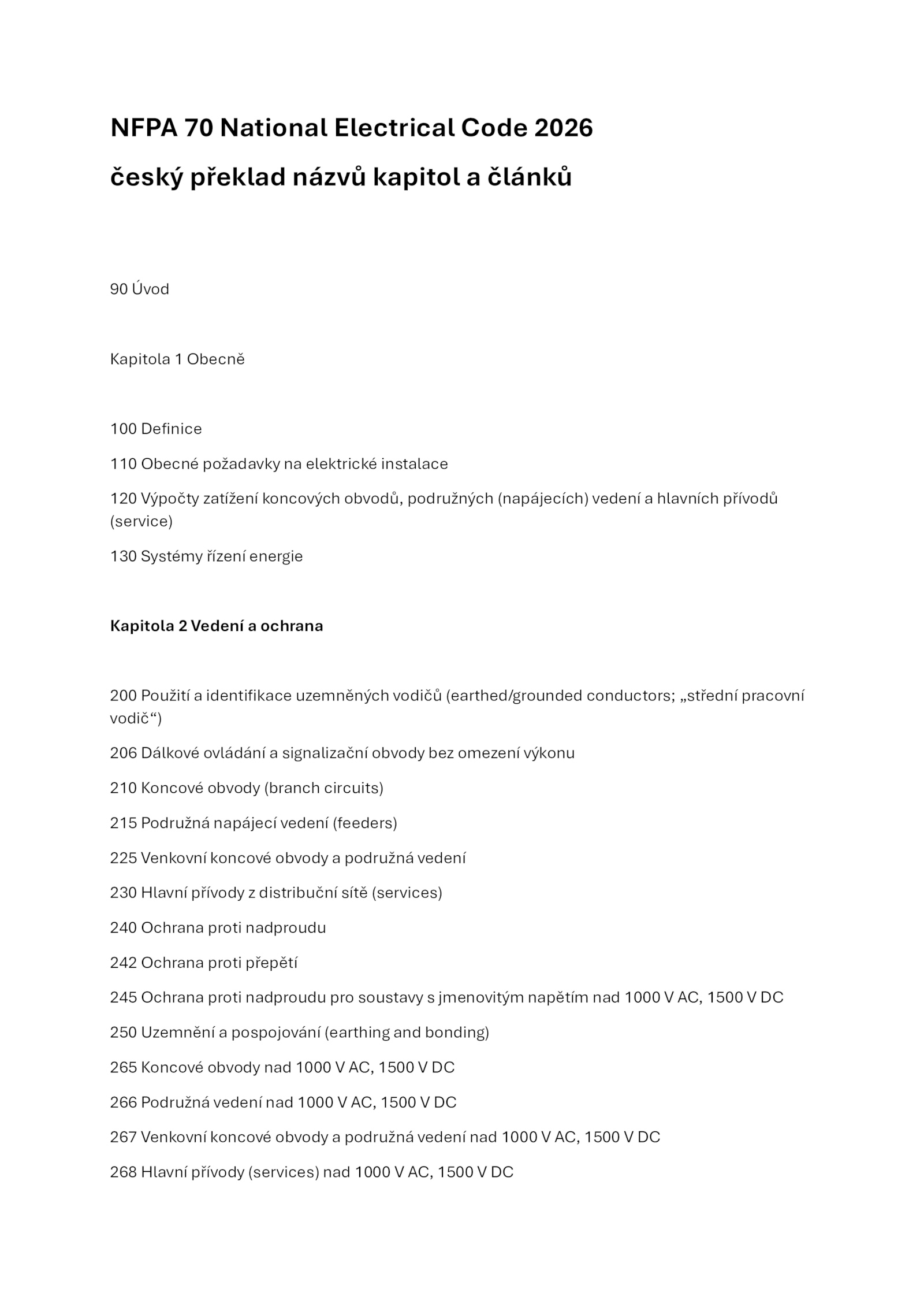 český překlad názvů kapitol článků
