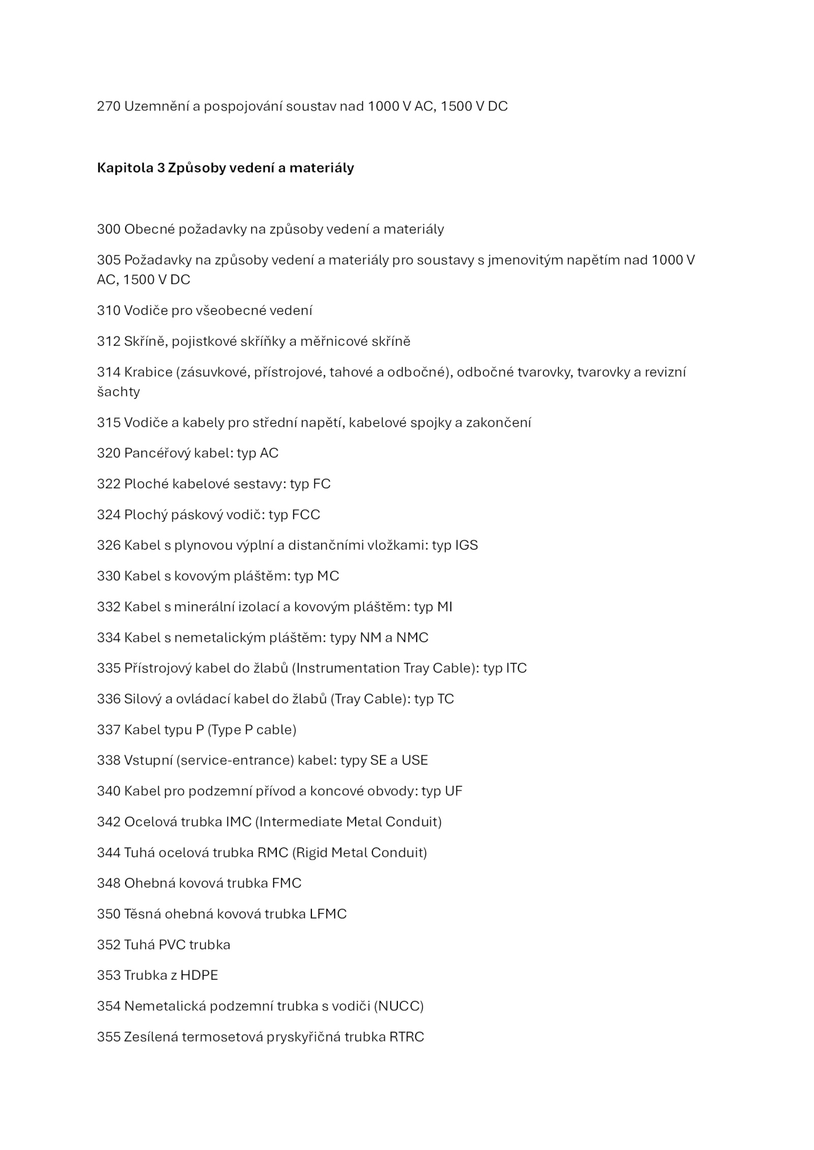 305 Požadavky způsoby vedení materiály pro soustavy jmenovitým napětím nad 1000 V