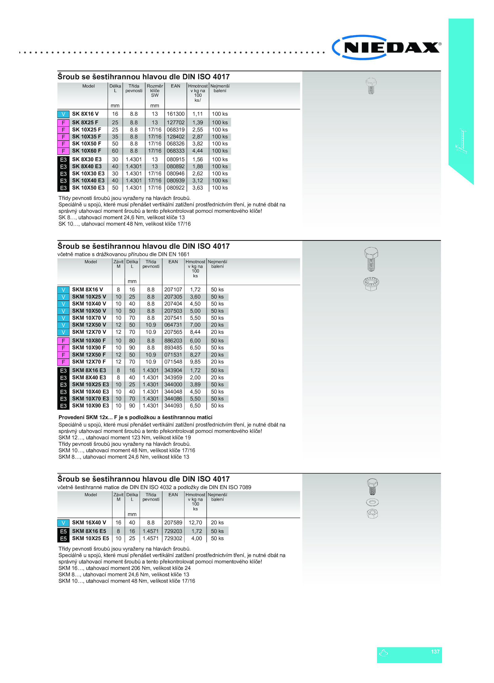 SK 10…, utahovací moment Nm, velikost klíče 17/16