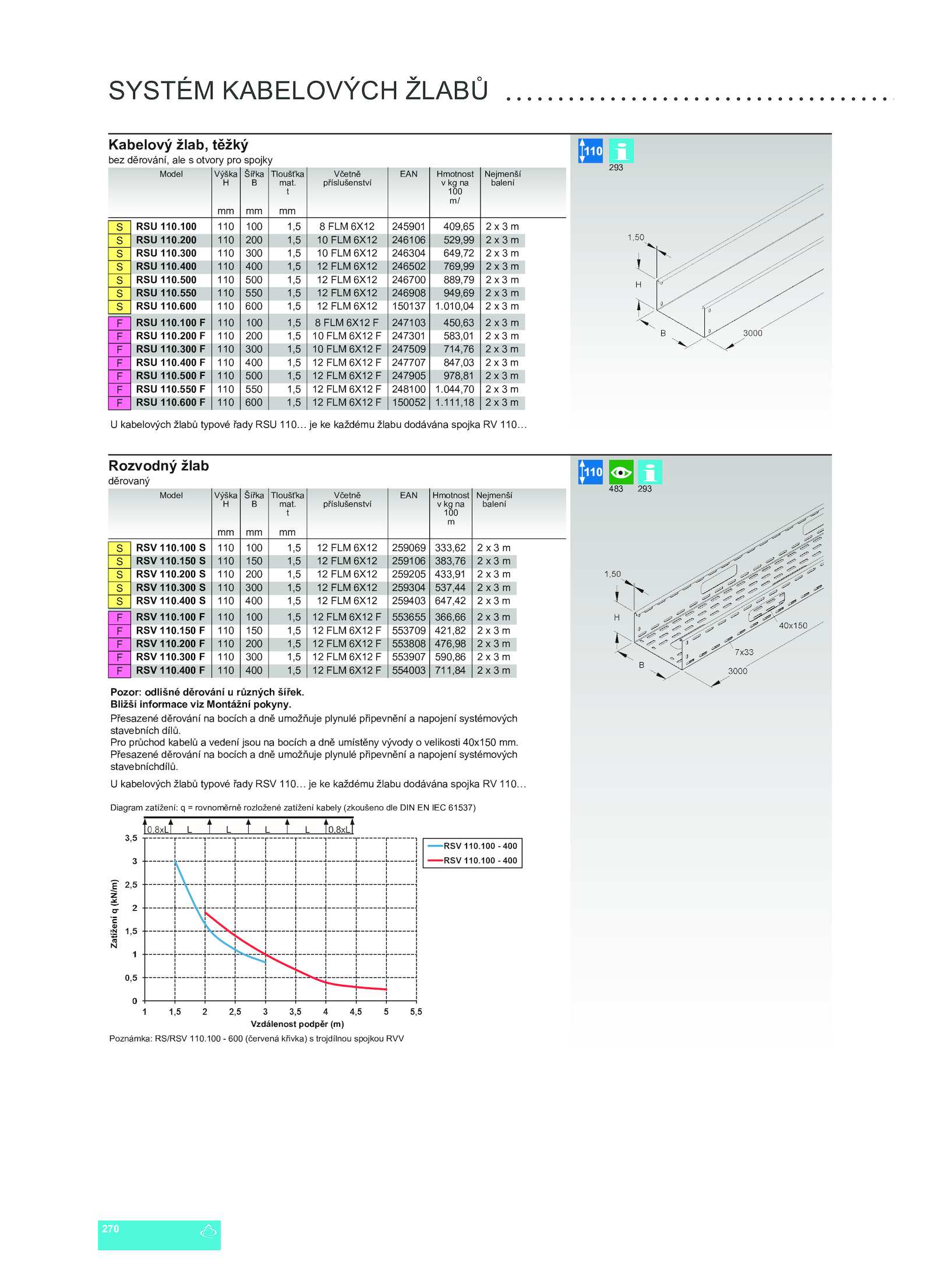 U kabelových žlabů typové řady RSU 110… každému žlabu dodávána spojka 110…