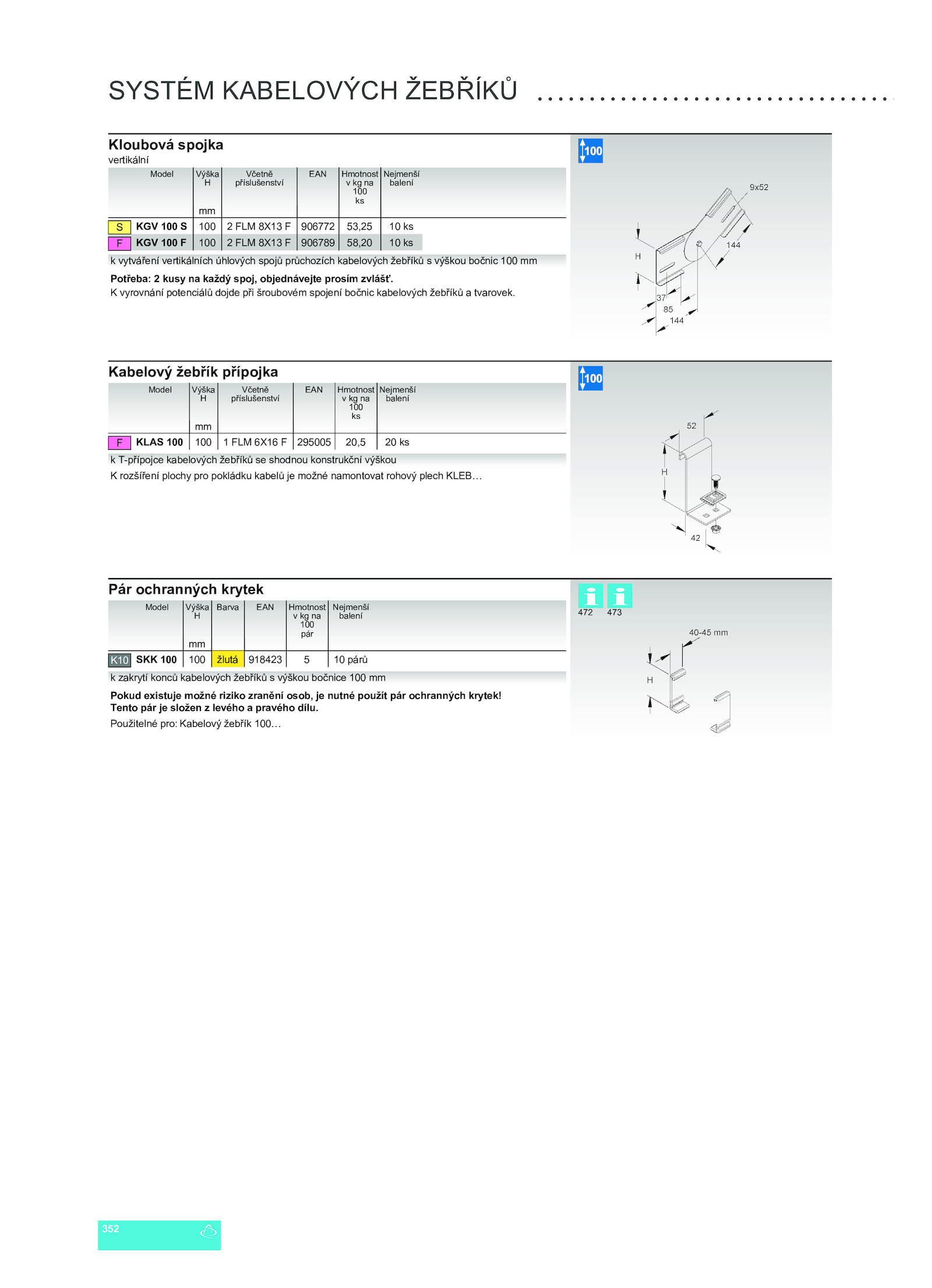 k vytváření vertikálních úhlových spojů průchozích kabelových žebříků výškou bočnic 100 mm