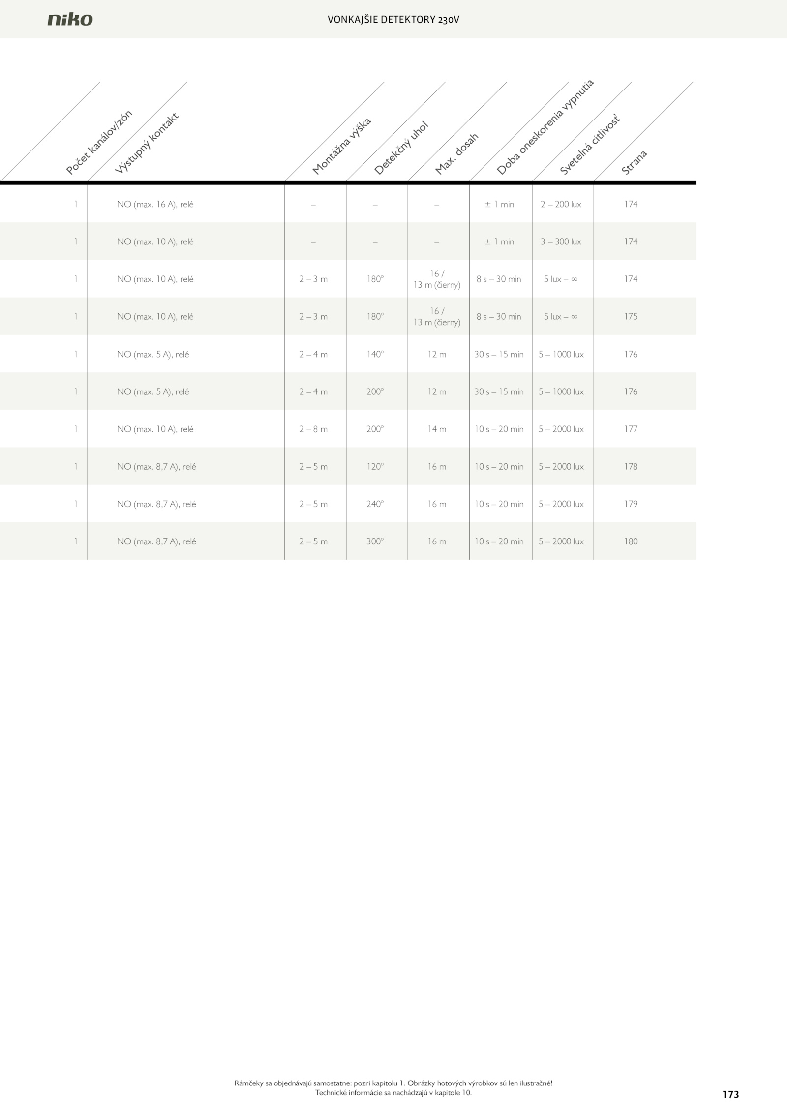 1 (max. 8,7 A), relé 240° min 2000 lux 179