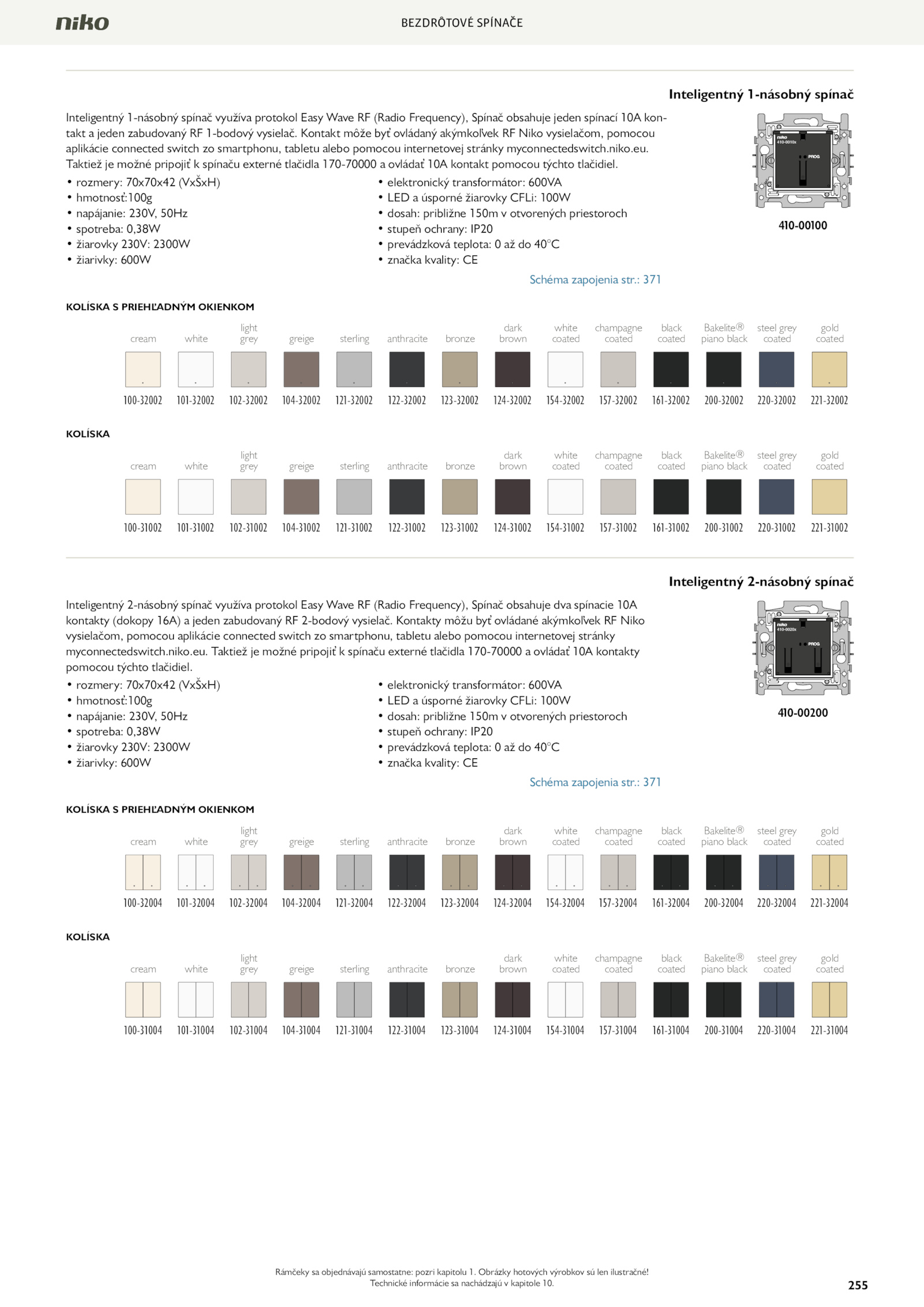 Technické informácie nachádzajú kapitole 10. Kontakt môže byť ovládaný akýmkoľvek Niko vysielačom, pomocou