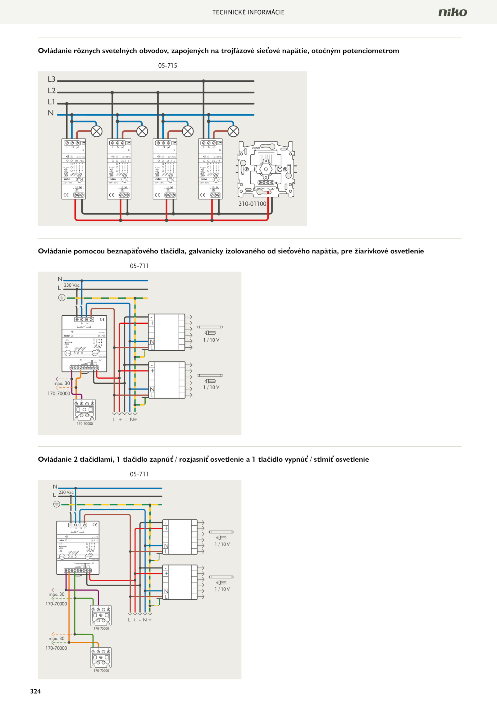 Ovládanie rôznych svetelných obvodov, zapojených trojfázové sieťové napätie, otočným potenciometrom