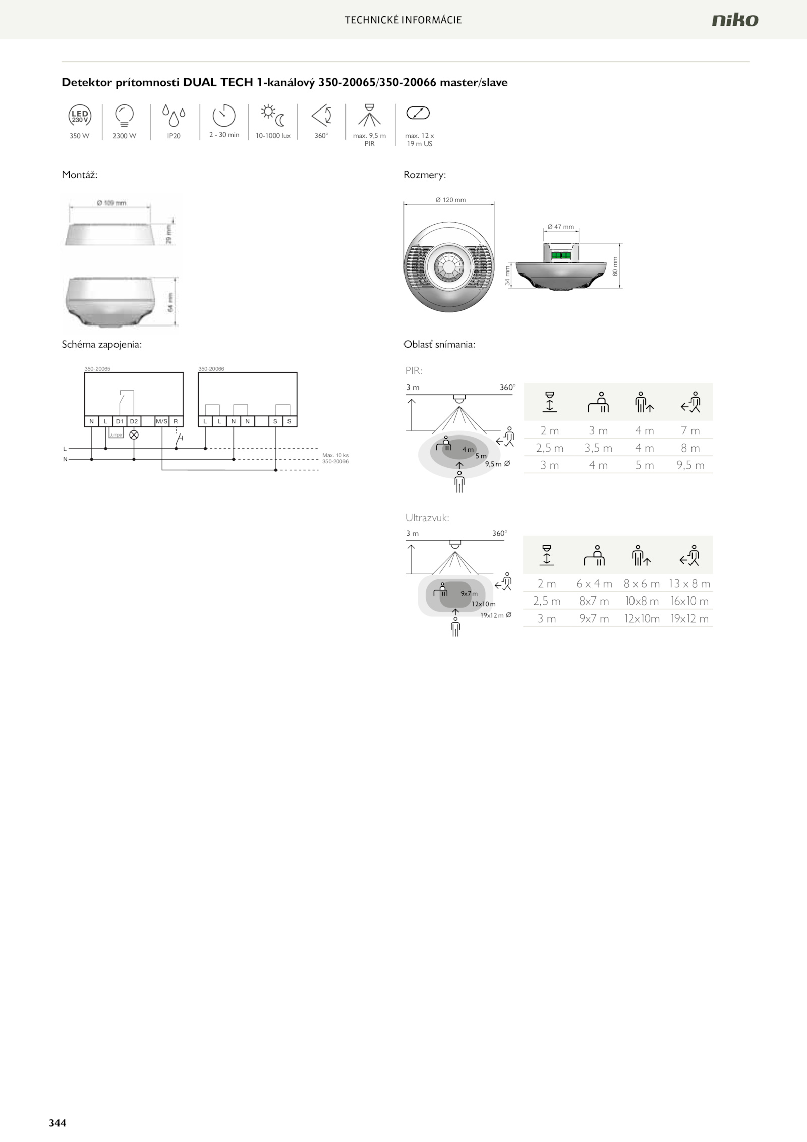 Detektor prítomnosti DUAL TECH 1-kanálový 350-20065/350-20066 master/slave