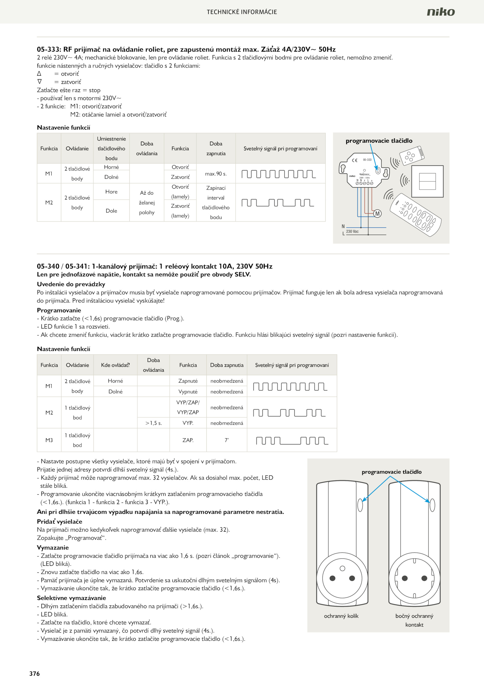05-340 05-341: 1-kanálový prijímač: reléový kontakt 10A, 230V 50Hz