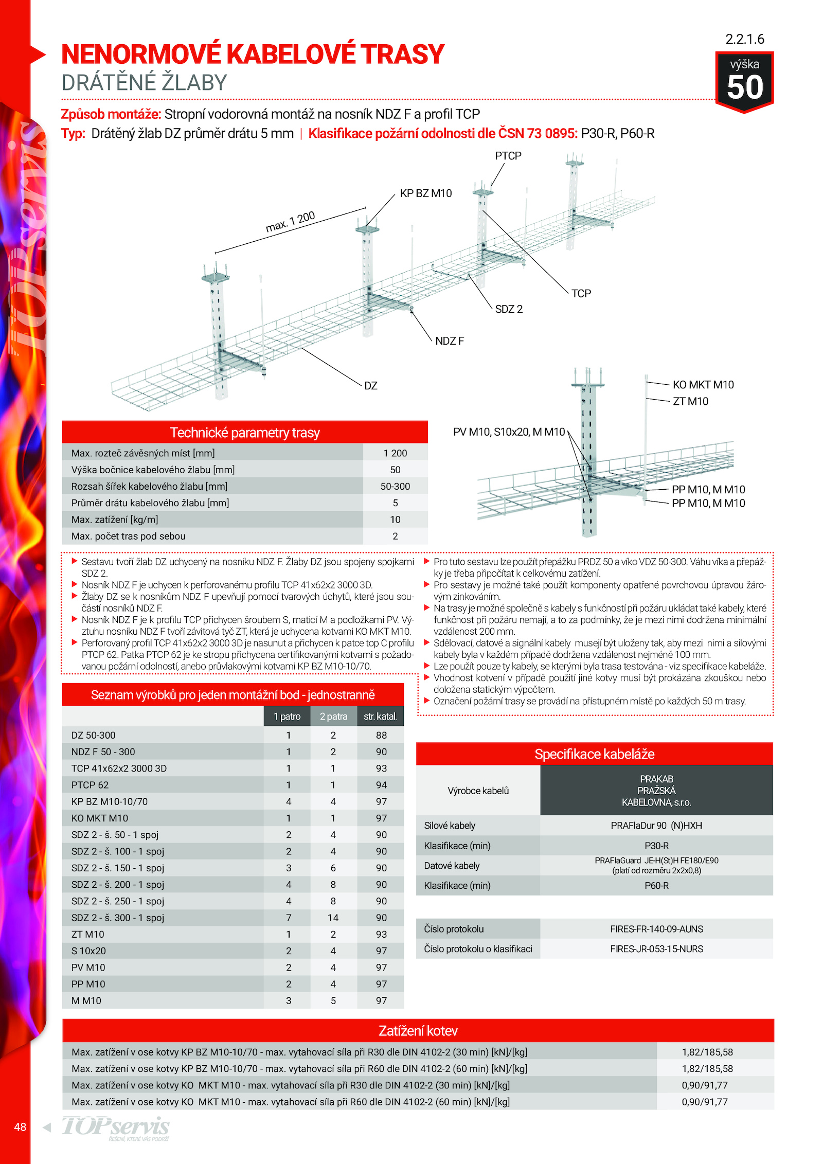Typ: Drátěný žlab průměr drátu Klasifikace požární odolnosti dle ČSN 0895: P30-R, P60-R