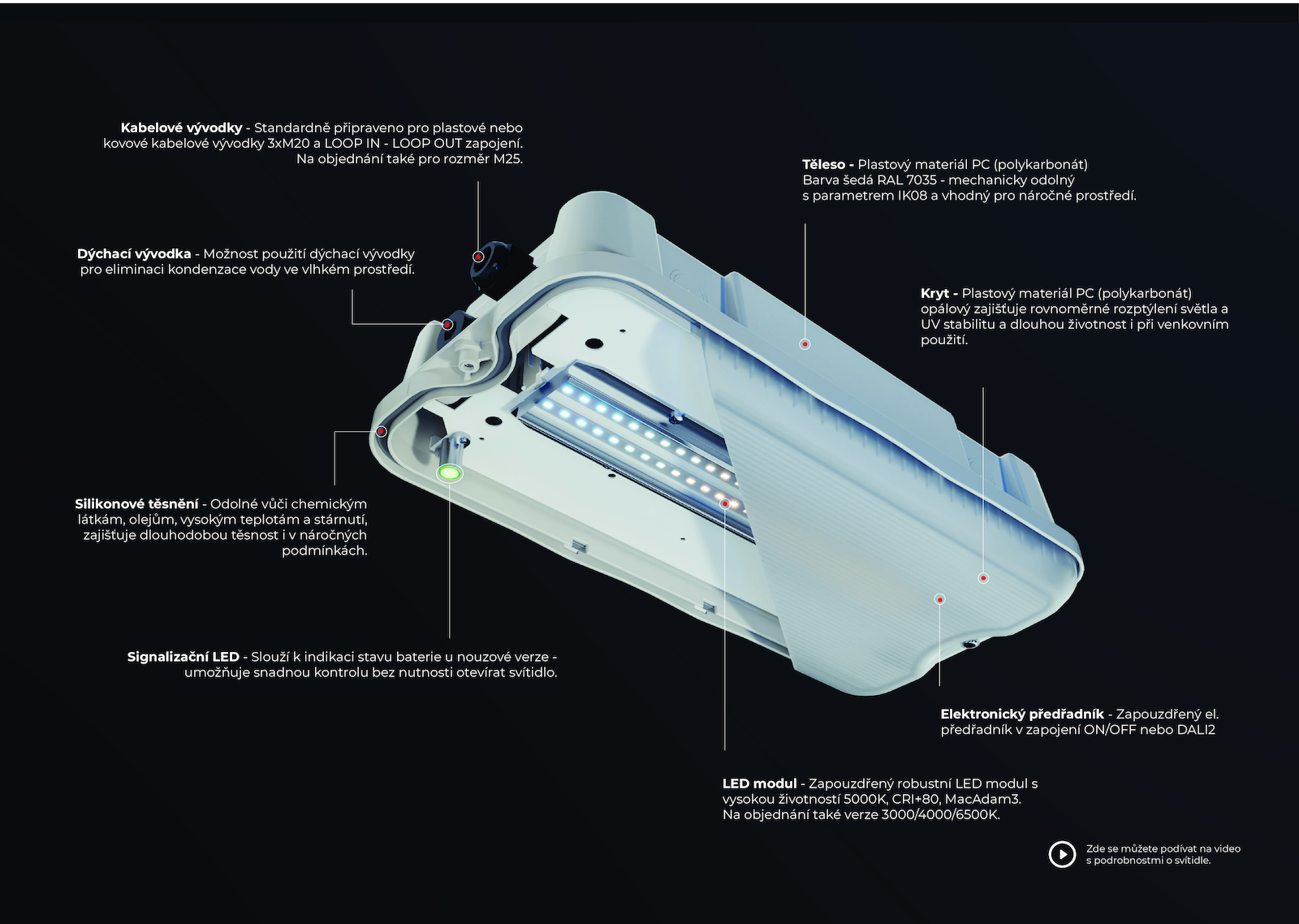 vysokou životností 5000K, CRI+80, MacAdam3.