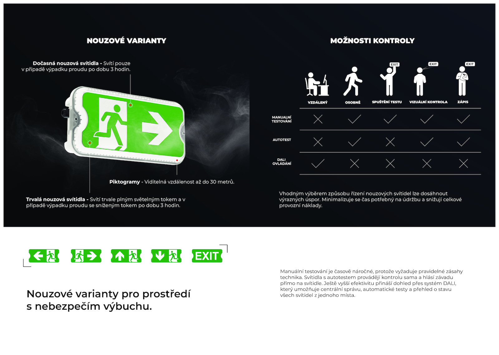 Vhodným výběrem způsobu řízení nouzových svítidel lze dosáhnout