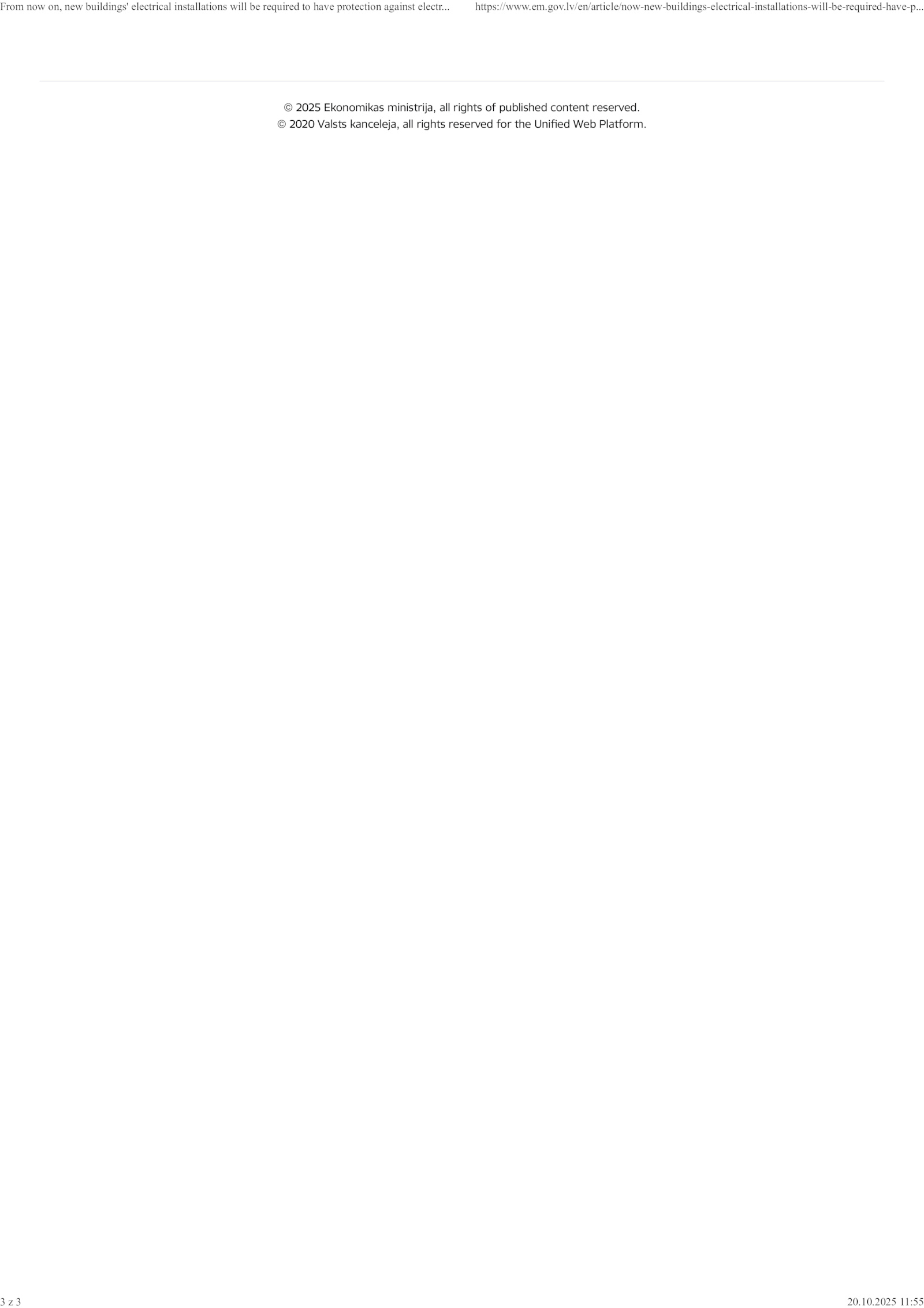 gov..em.2025 11:55 . 3 20. https://www.. © 2020 Valsts kanceleja, all rights reserved for the Unified Web Platform.lv/en/article/now-new-buildings-electrical-installations-will-be-required-have-p..2025 Ekonomikas ministrija, all rights published content reserved.. From now on, new buildings' electrical installations will required have protection against electr.10