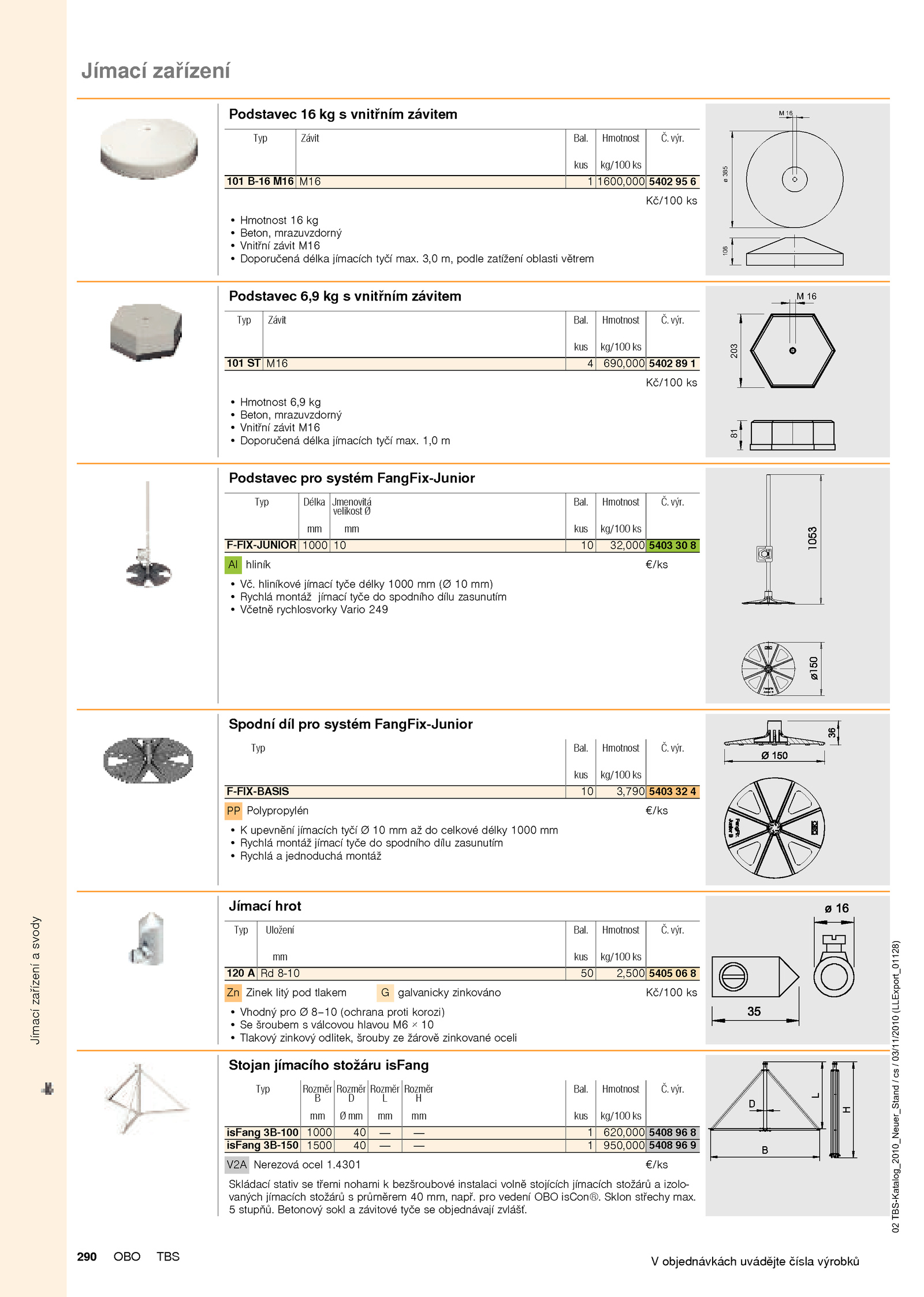 Č. Betonový sokl závitové tyče objednávají zvlášť. kus Hmotnost kg/100 výr. výr.Jímací zařízení