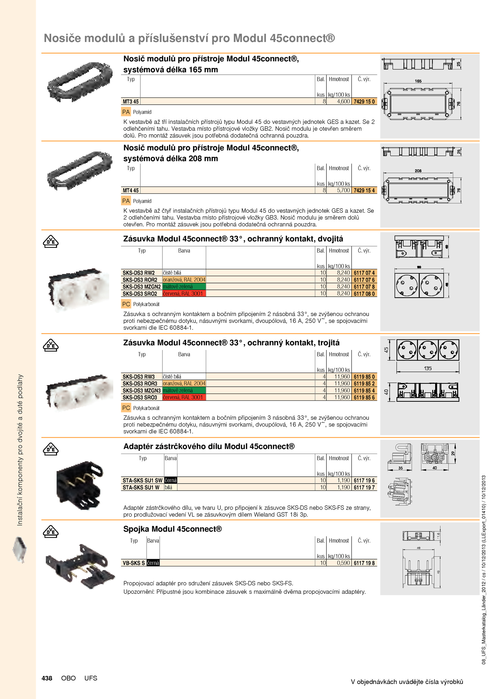 Pomůcka pro projektování Systém kanálů zalitých mazaninou EÜK Systém otevřených kanálů OKA, uložený v mazanině Systém otevřených kanálů OKB, uložený v mazanině Kanálové systémy pro vestavbu přístrojů od výšky mazaniny 55 mm Systém kanálů uložených v mazanině EBK, uzavřený Systémy do betonu IBK Systém instalačních kanálů na podlahu AIK Přístrojové jednotky GES Rámové a nivelizovatelné kazety Kazety pro vysoká zatížení Montážní systémy pro instalační přístroje Přístrojové nástavce s přesahem přes podlahu Podlahové vývody a kompletní řešení Instalační komponenty pro dvojité a duté podlahy Instalační přístroje Modul 45 Protipožární systémy UFS Rejstříky