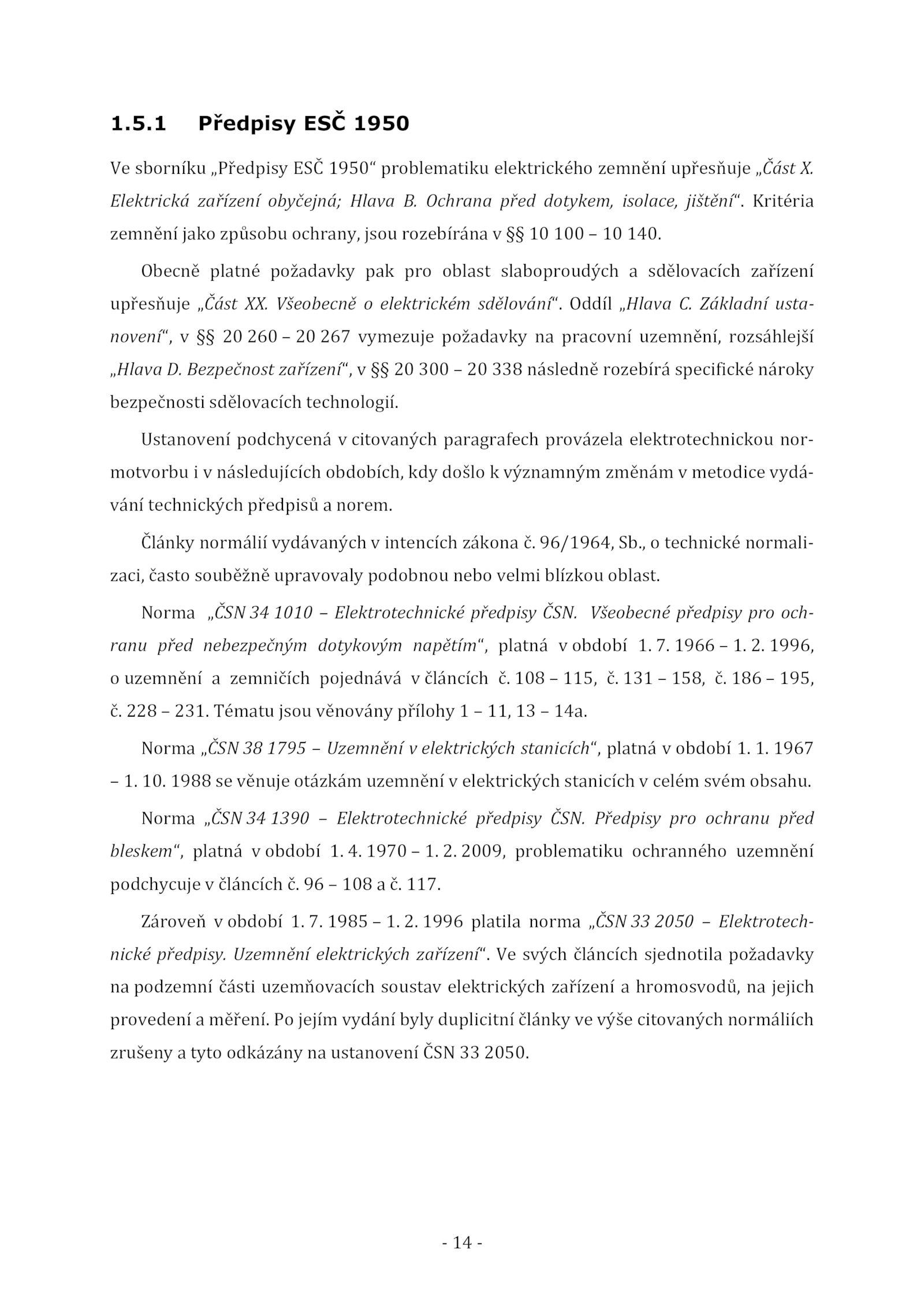Ustanovení podchycená citovaných paragrafech provázela elektrotechnickou nor-