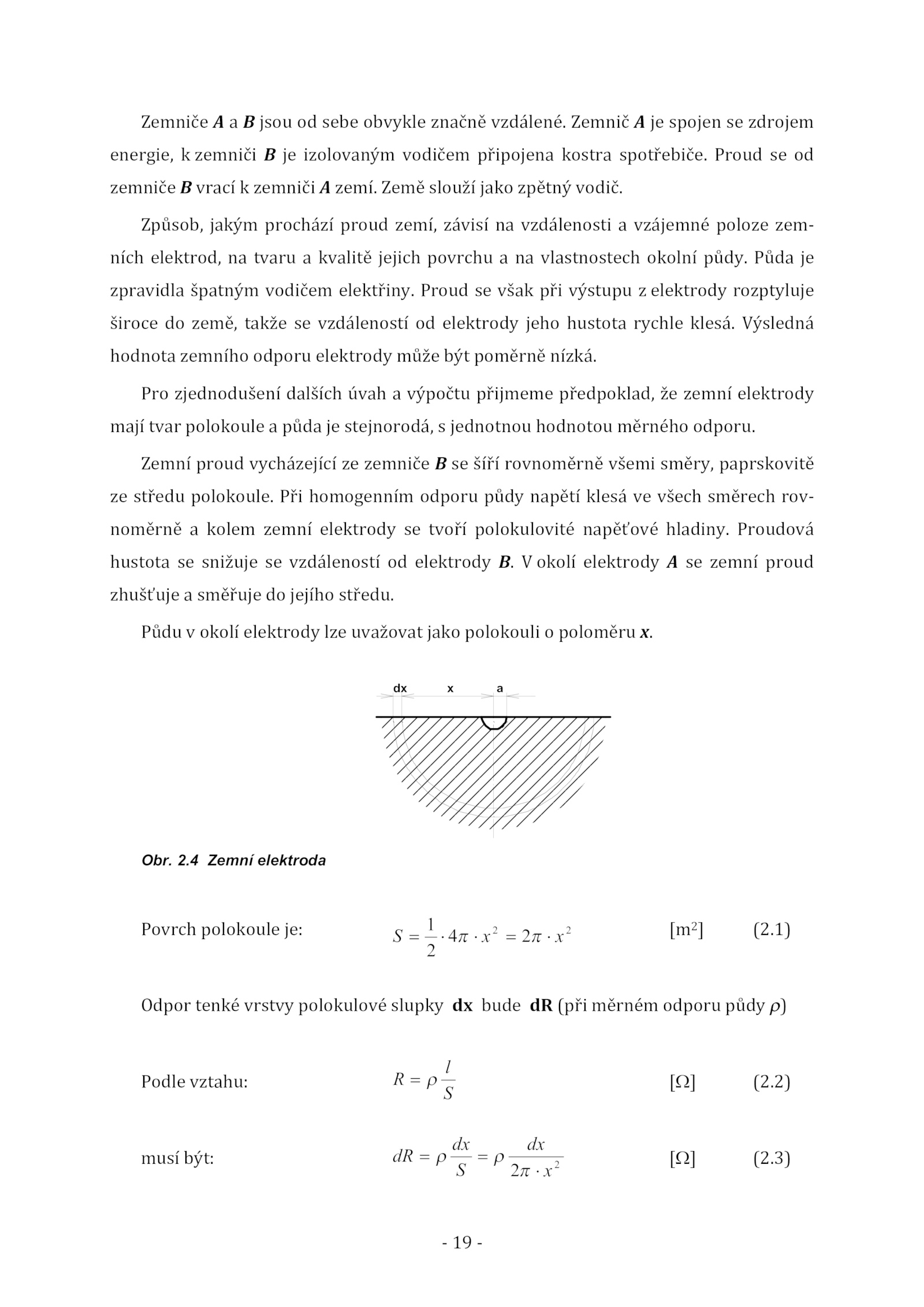 mají tvar polokoule půda stejnorodá, jednotnou hodnotou měrného odporu.4 Zemní elektroda