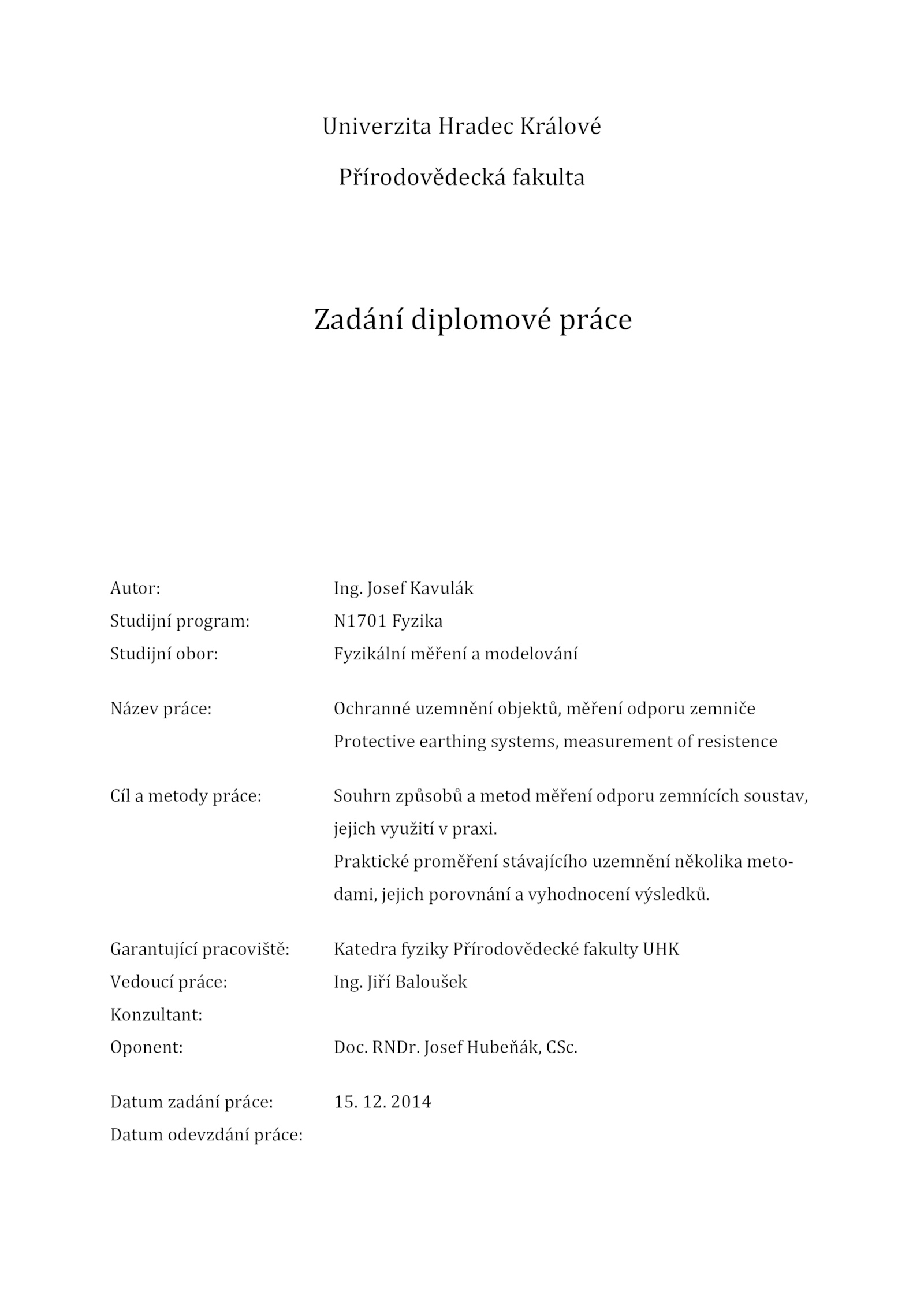 Garantující pracoviště: Katedra fyziky Přírodovědecké fakulty UHK