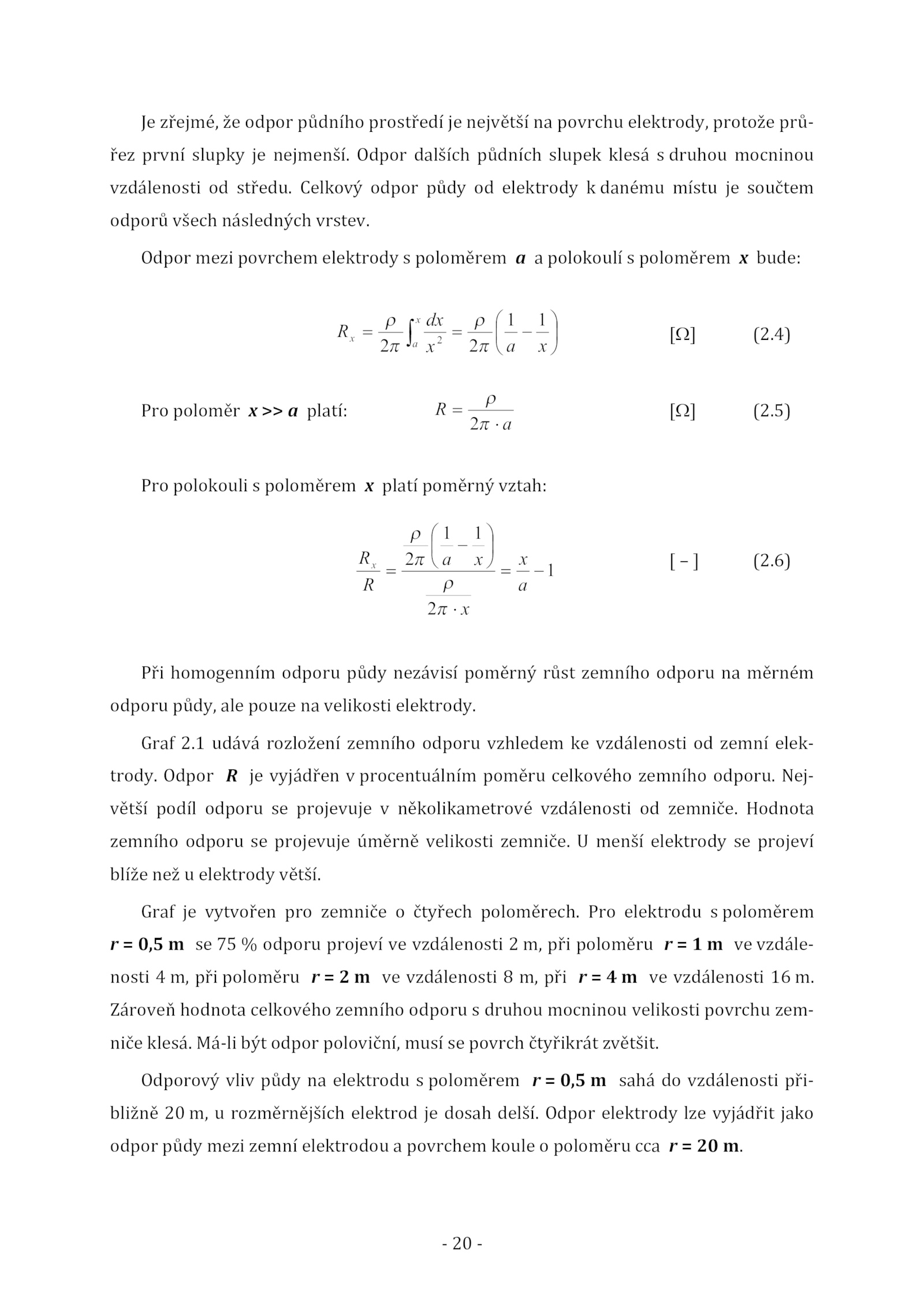 nosti při poloměru vzdálenosti při vzdálenosti m. Celkový odpor půdy elektrody danému místu součtem