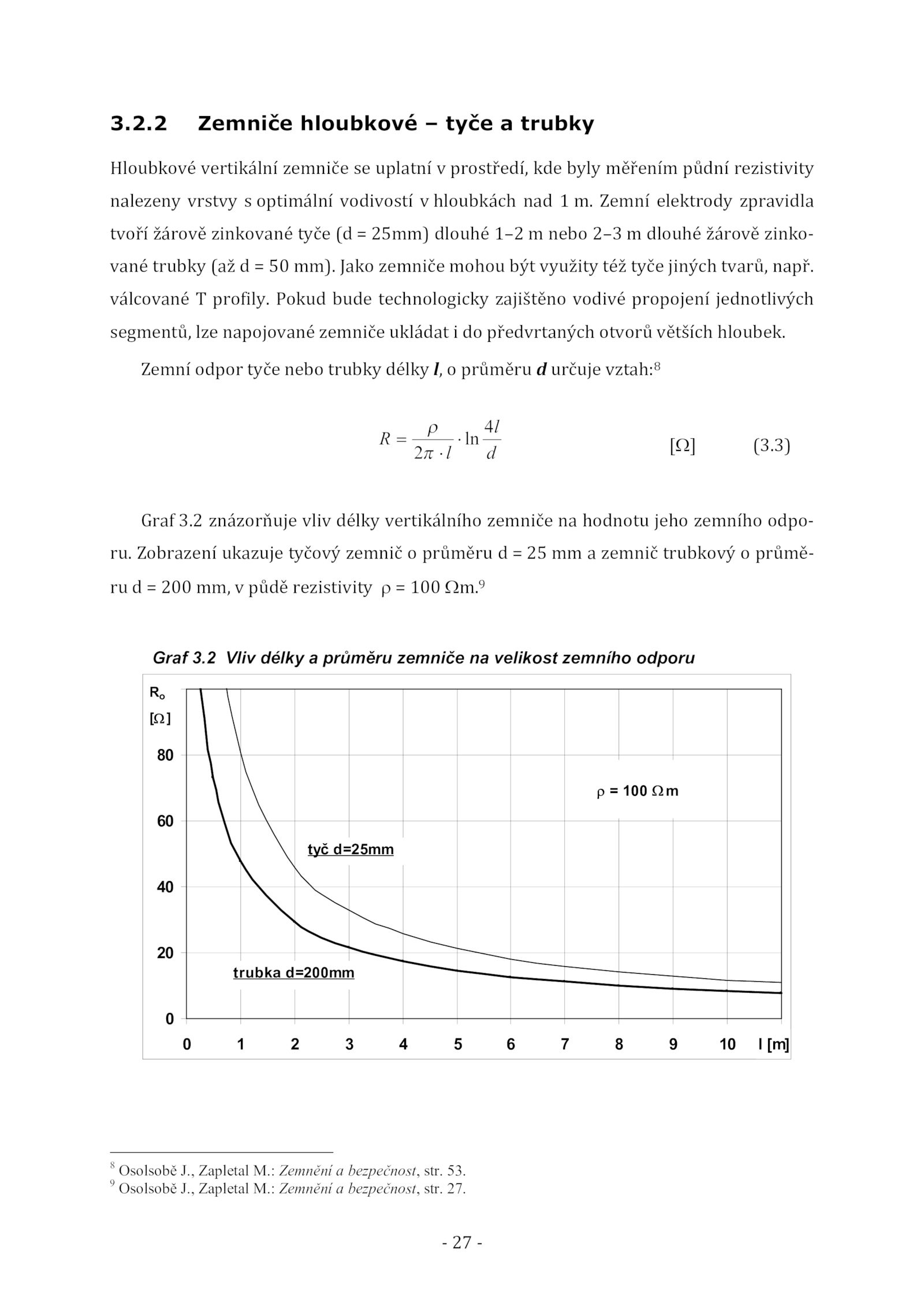 , Zapletal M. Jako zemniče mohou být využity též tyče jiných tvarů, např. 27.: Zemnění bezpečnost, str.2 Vliv délky průměru zemniče velikost zemního odporu