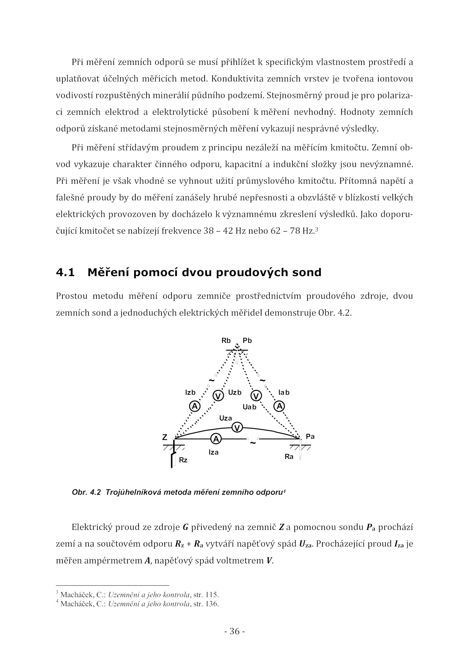 zemí součtovém odporu vytváří napěťový spád Uza.1 Měření pomocí dvou proudových sond