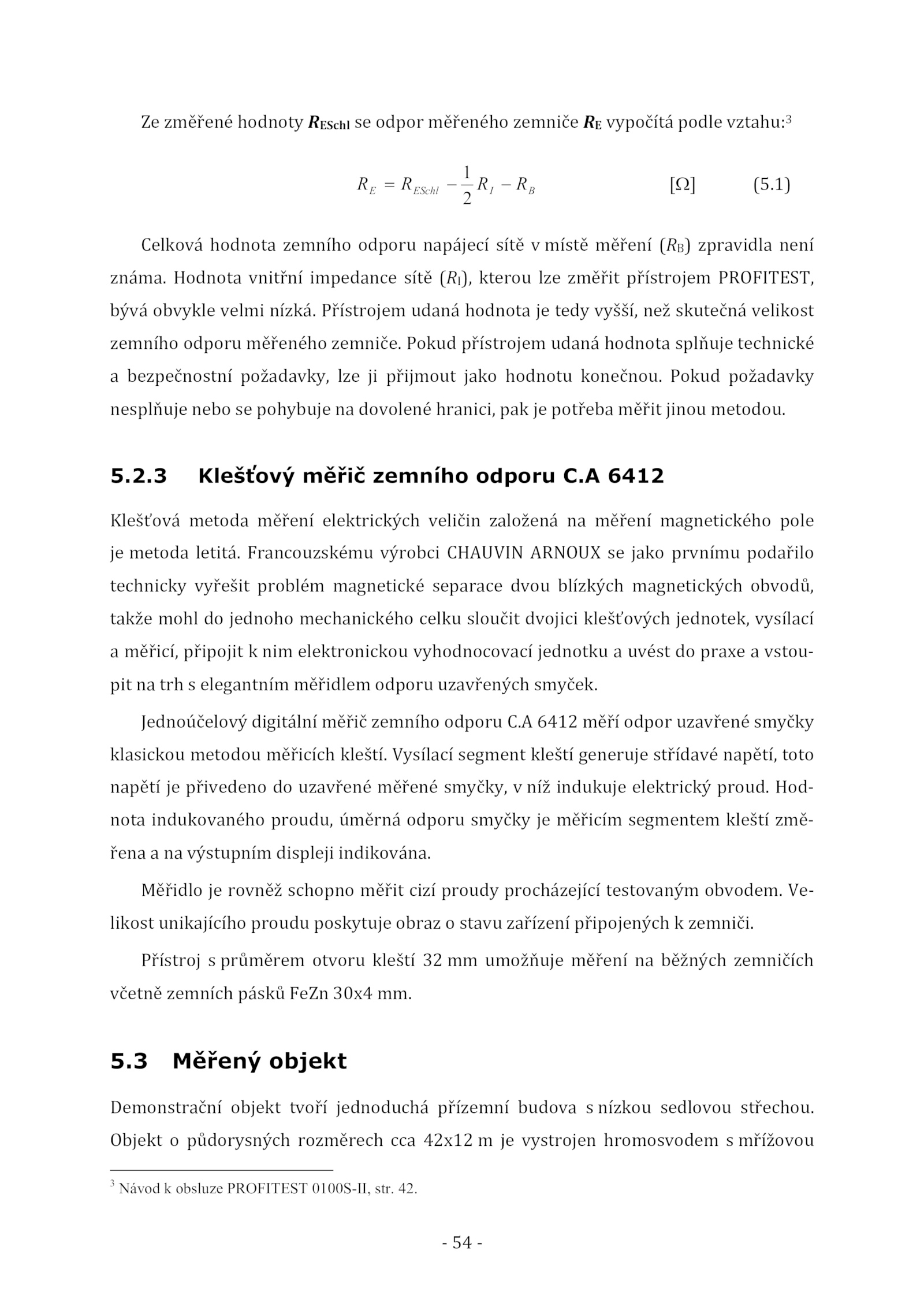 Ze změřené hodnoty RESchl odpor měřeného zemniče vypočítá podle vztahu:3