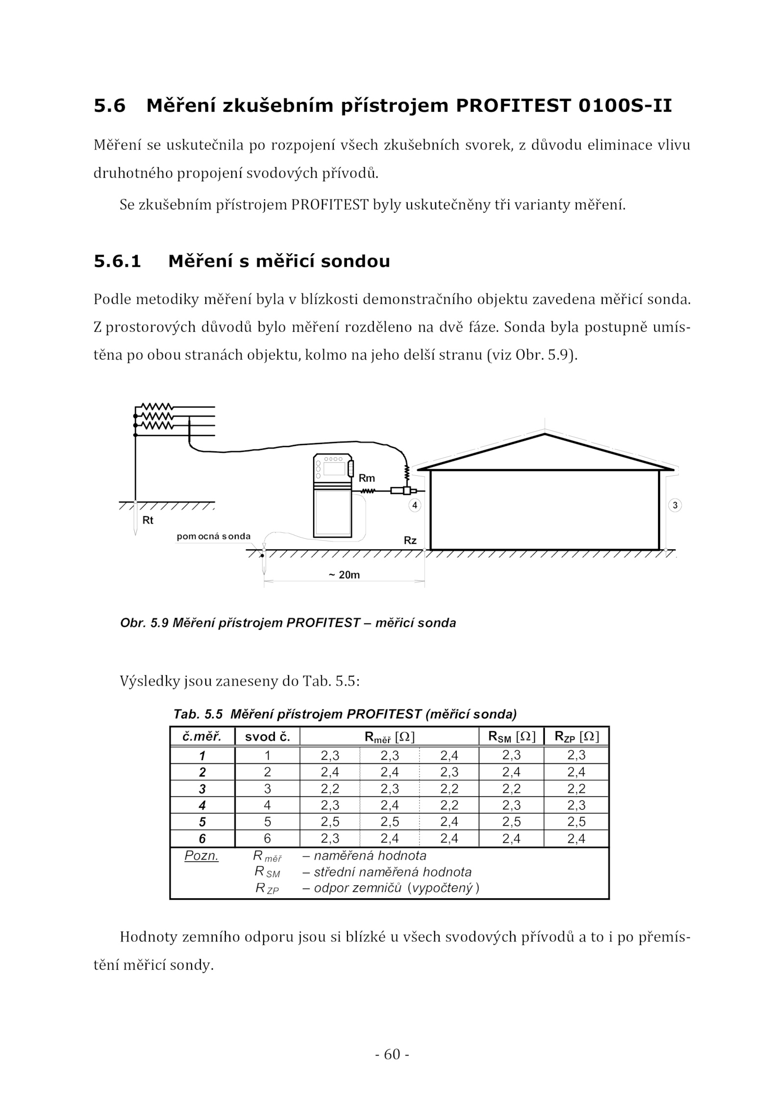 Výsledky jsou zaneseny Tab.9).5 Měření přístrojem PROFITEST (měřicí sonda)
