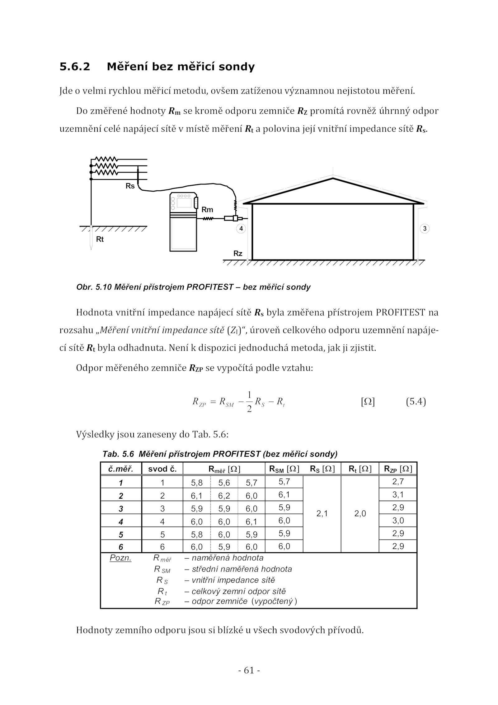 uzemnění celé napájecí sítě místě měření polovina její vnitřní impedance sítě Rs.10 Měření přístrojem PROFITEST bez měřicí sondy