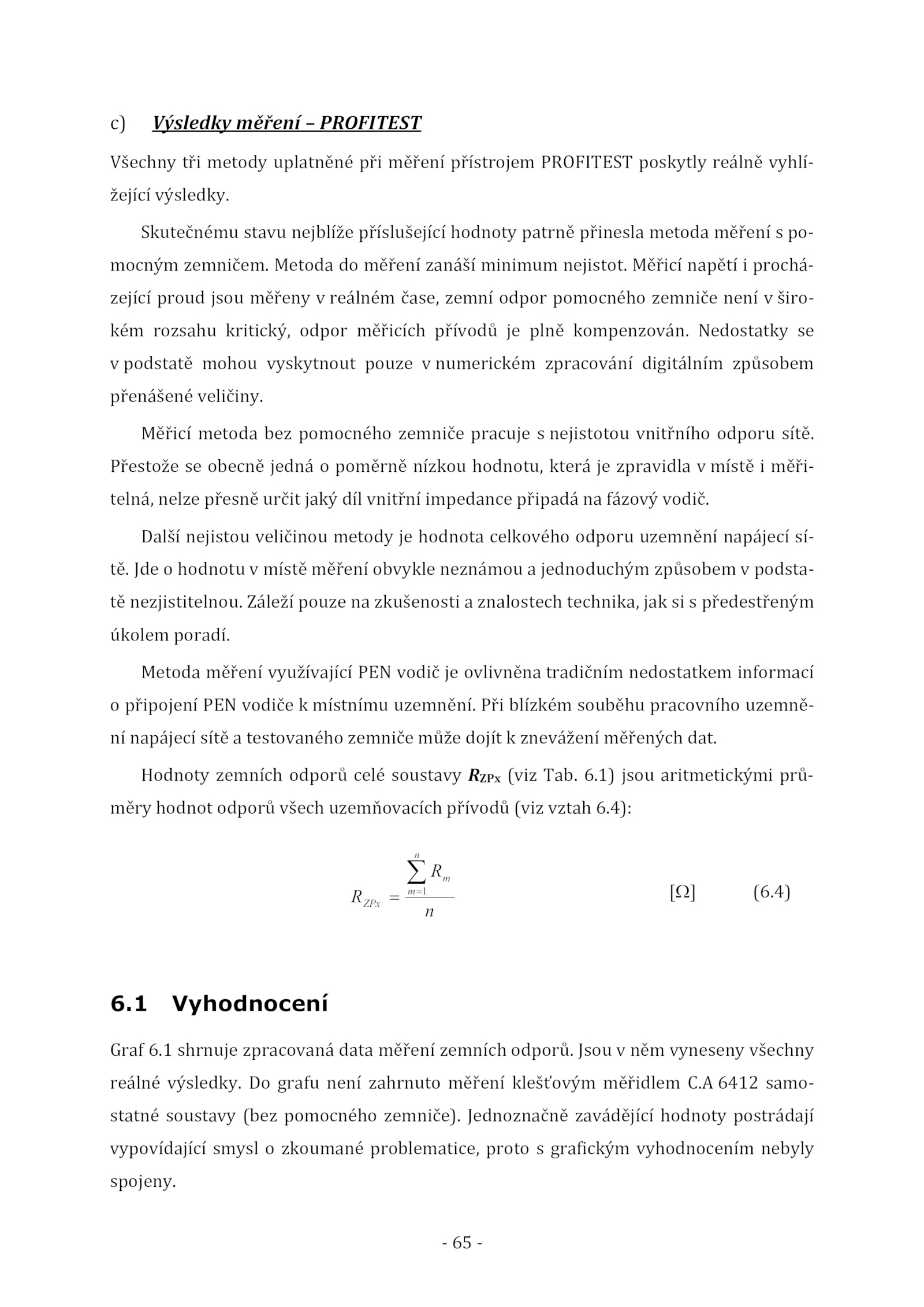 měry hodnot odporů všech uzemňovacích přívodů (viz vztah 6.