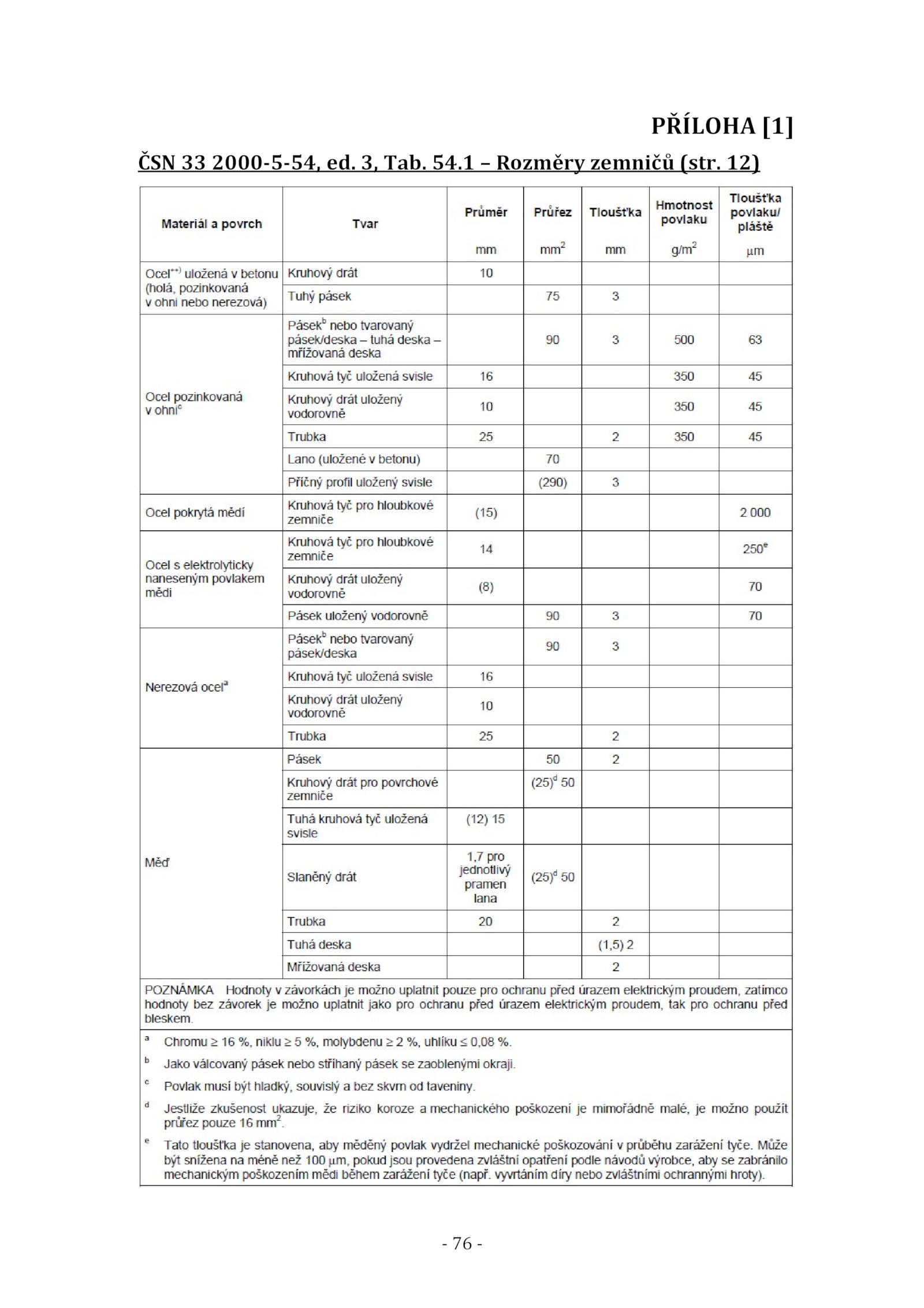 12) . 54.- PŘÍLOHA [1] ČSN 2000-5-54, ed. Tab.1 Rozměry zemničů (str
