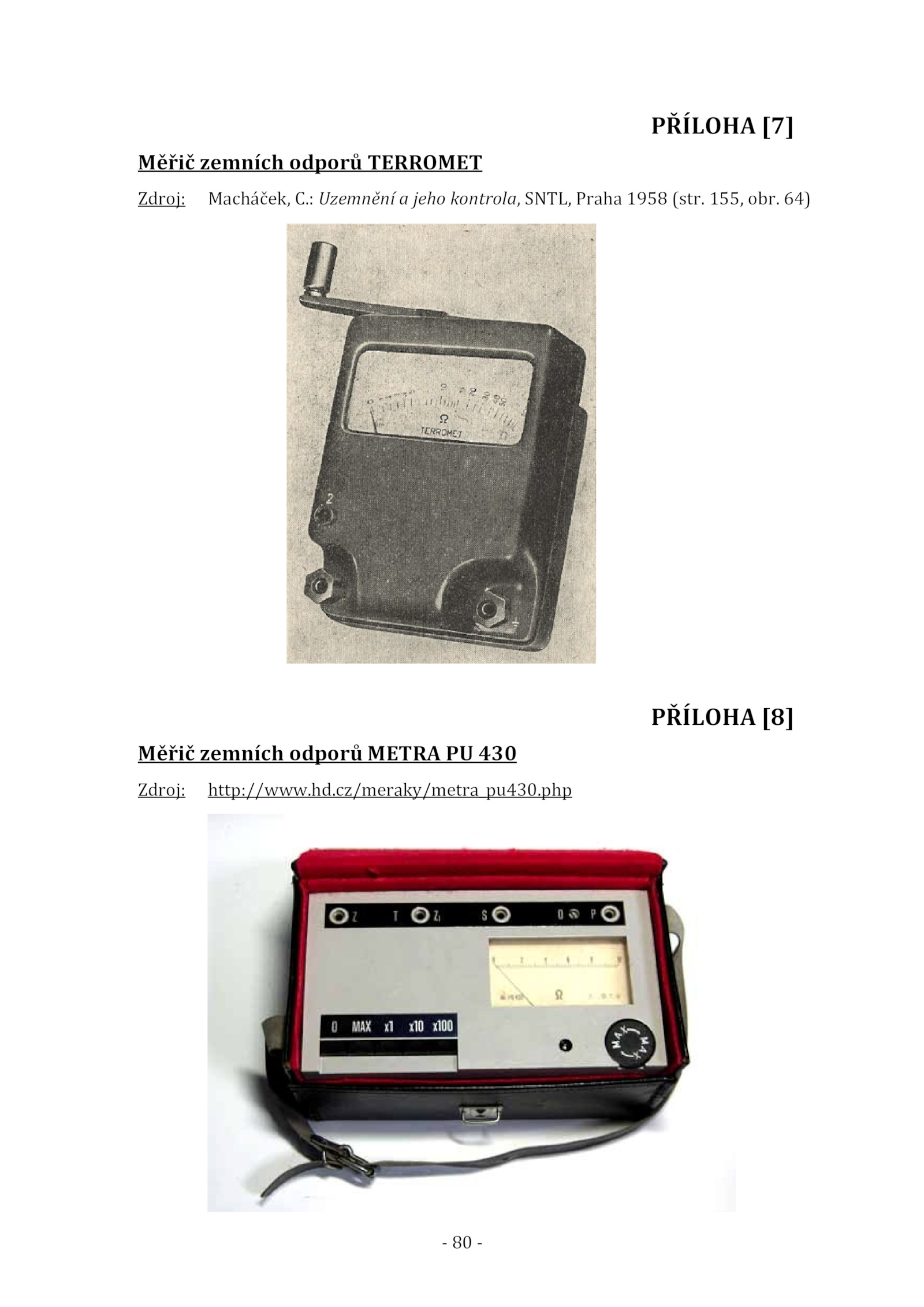 - PŘÍLOHA [7] Měřič zemních odporů TERROMET Zdroj: Macháček, C. 64) PŘÍLOHA [8] Měřič zemních odporů METRA 430 Zdroj: http://www.cz/meraky/metra_pu430. 155, obr.php .: Uzemnění jeho kontrola, SNTL, Praha 1958 (str.hd