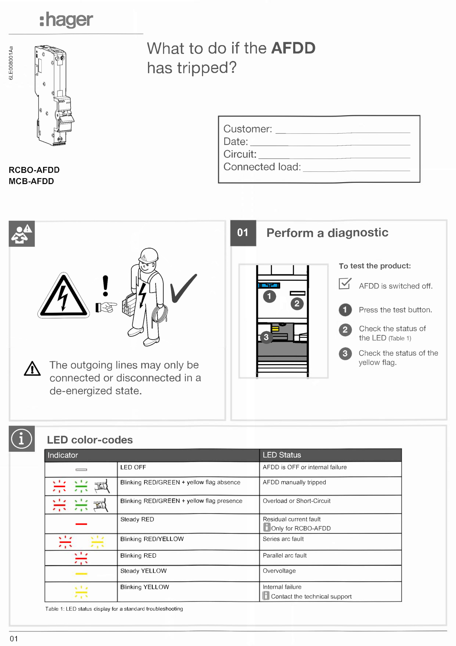 Blinking RED/GREEN yellow flag absence AFDD manually tripped