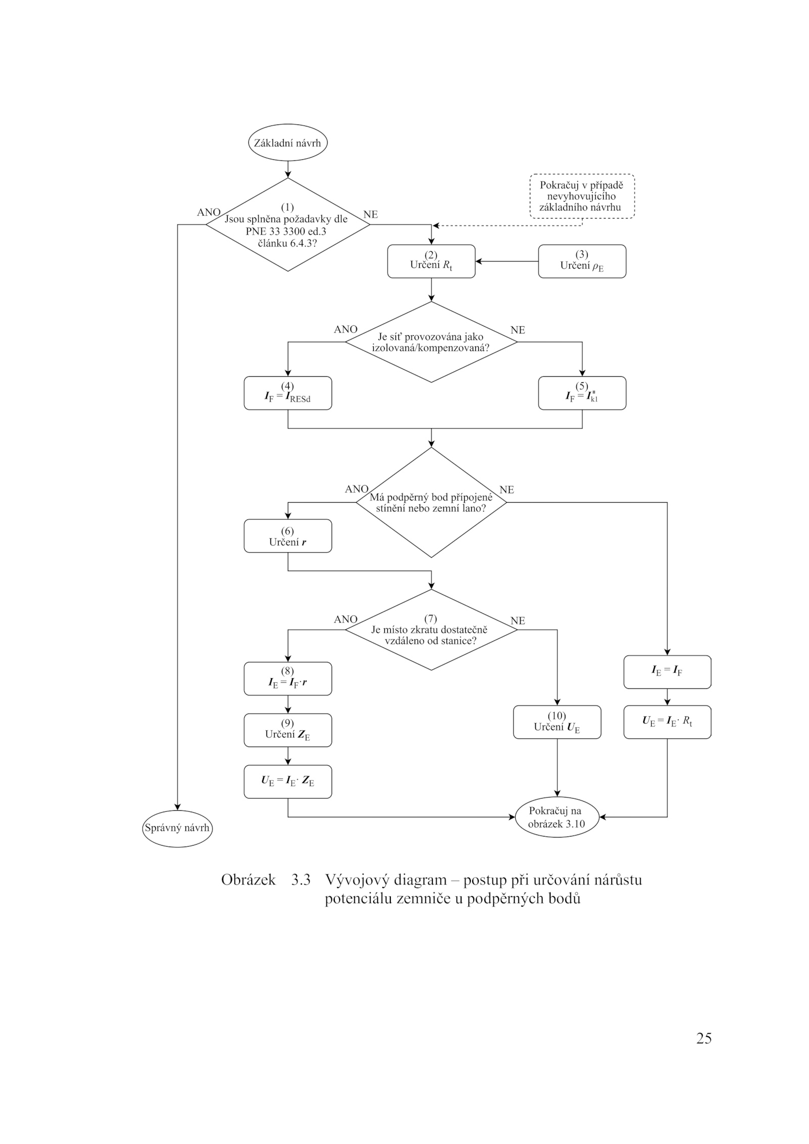 25 Obrázek 3.3 Vývojový diagram postup při určování nárůstu potenciálu zemniče podpěrných bodů