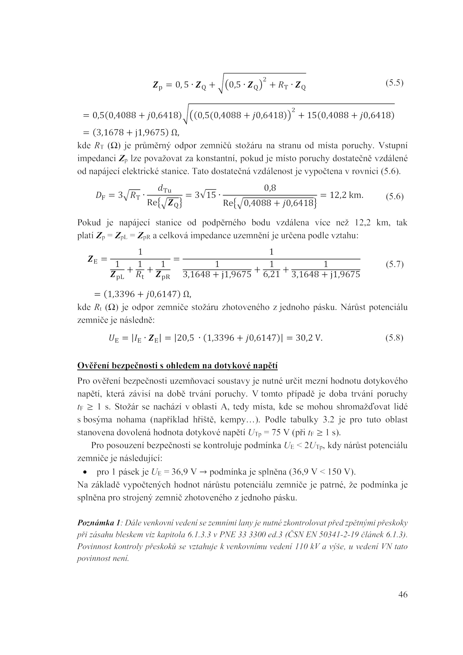 kde (Ω) průměrný odpor zemničů stožáru stranu místa poruchy.3 (ČSN 50341-2-19 článek 6.6).3).3.1.2 pro tuto oblast