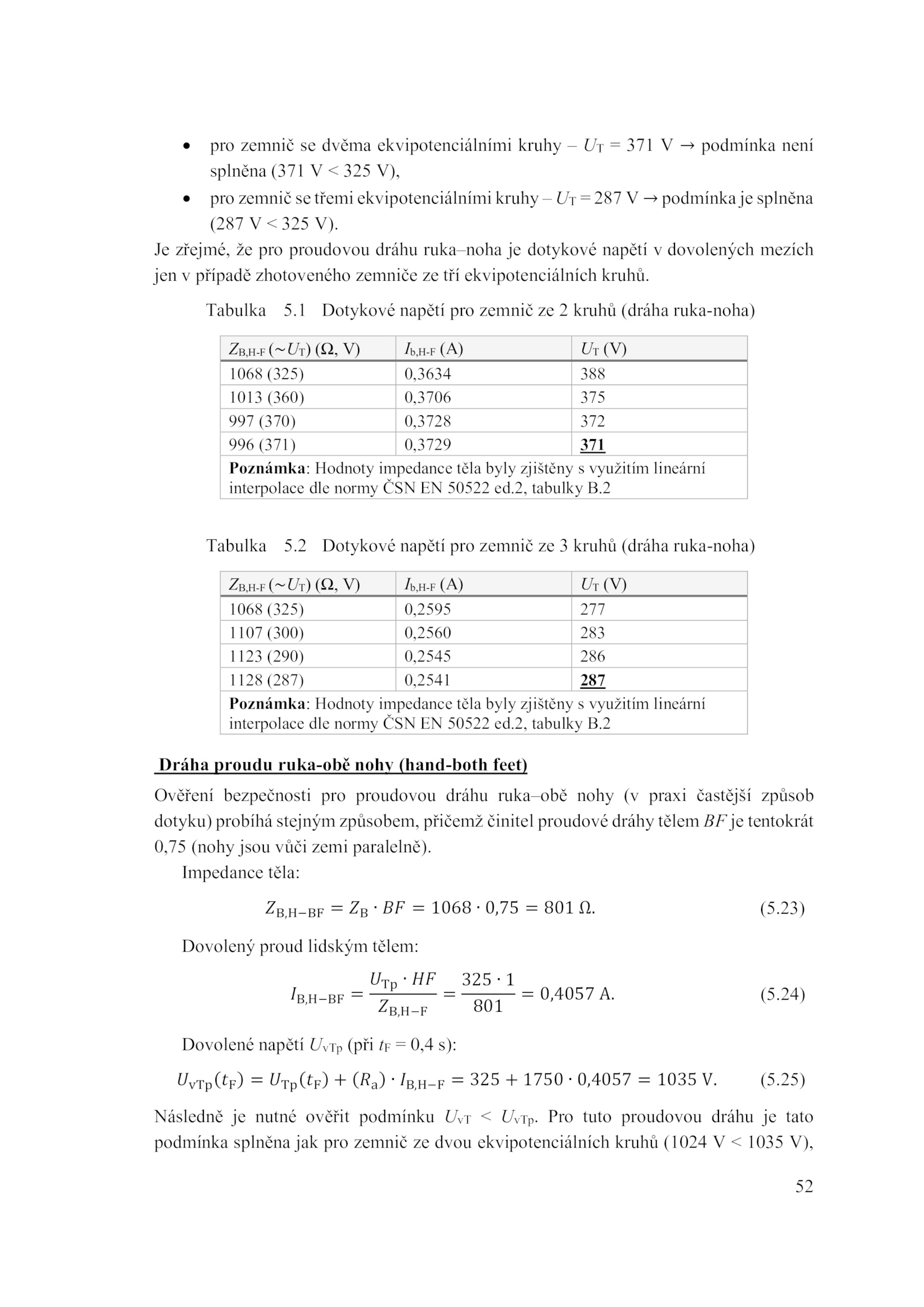 jen případě zhotoveného zemniče tří ekvipotenciálních kruhů.1 Dotykové napětí pro zemnič kruhů (dráha ruka-noha)