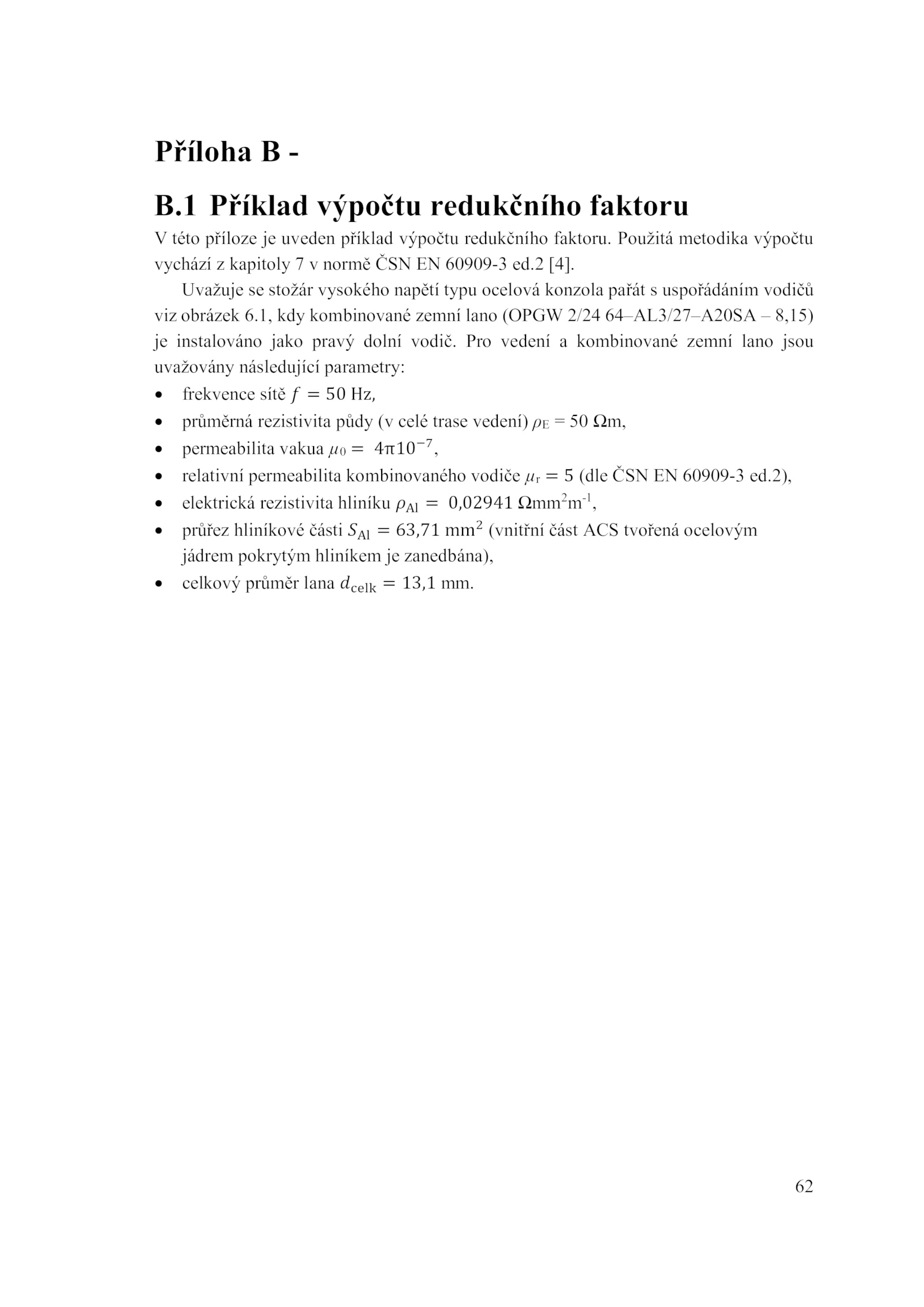 V této příloze uveden příklad výpočtu redukčního faktoru. Pro vedení kombinované zemní lano jsou