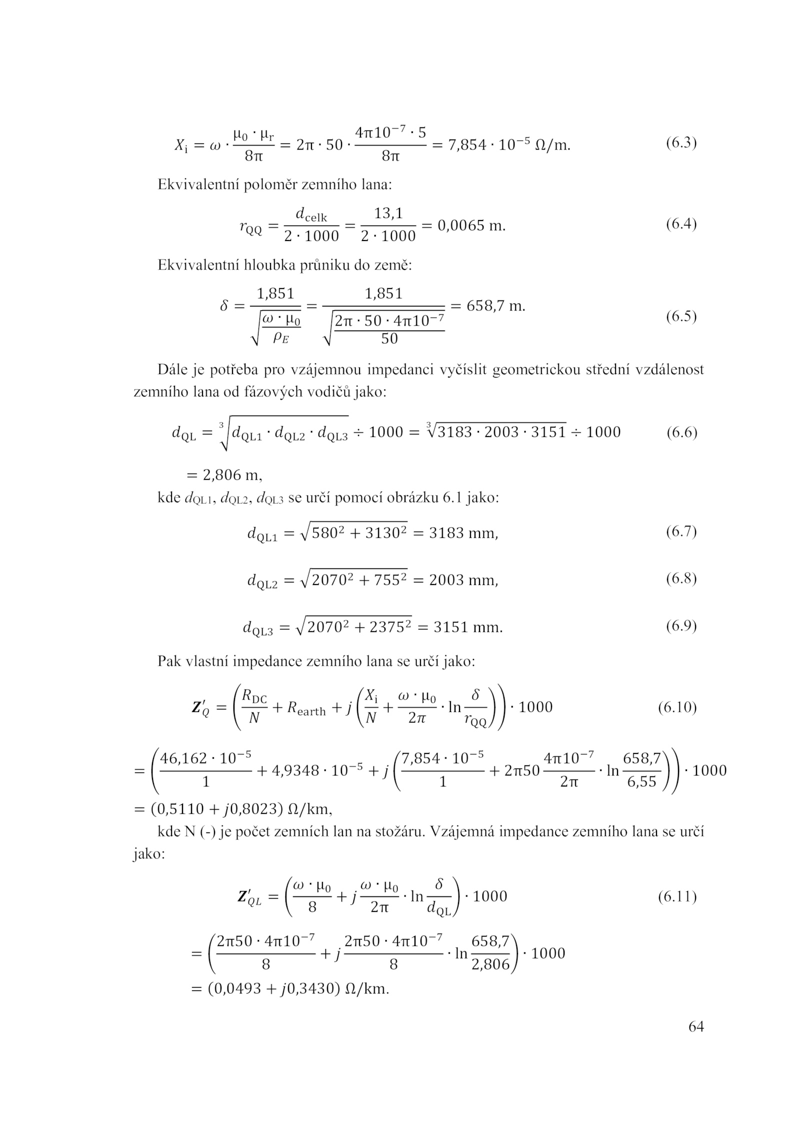 = 658,7 m. Vzájemná impedance zemního lana určí