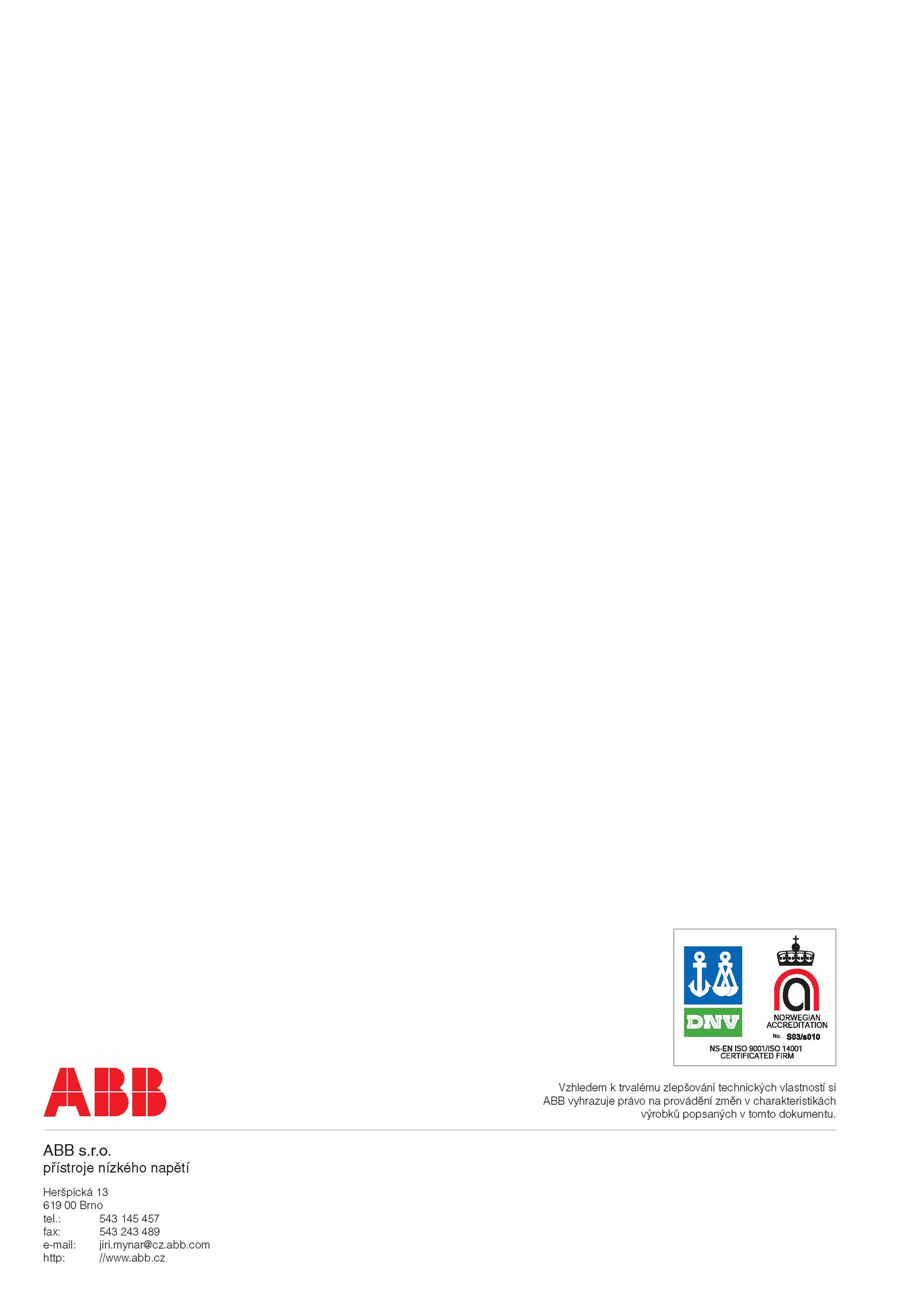 r.m ynar@ cz. A IIII ŕ i ABB s. přístroje nízkého napětí H ršp ická 13 619 rno tel.oNORW EGIAN AC REDITATIO N Nn CM/>nin NS-EN ISO 9001/ISQ 14001 C ERTIFICATED FIRM V lede trvalém zle ických vla stn stí si A vyh právo pro cha kte ristiká ch v ýrobků ých tom dokum entu.: 543 145 457 fax: 543 243 489 e-m ail: jiri.o.co m http: //w .cz .a bb