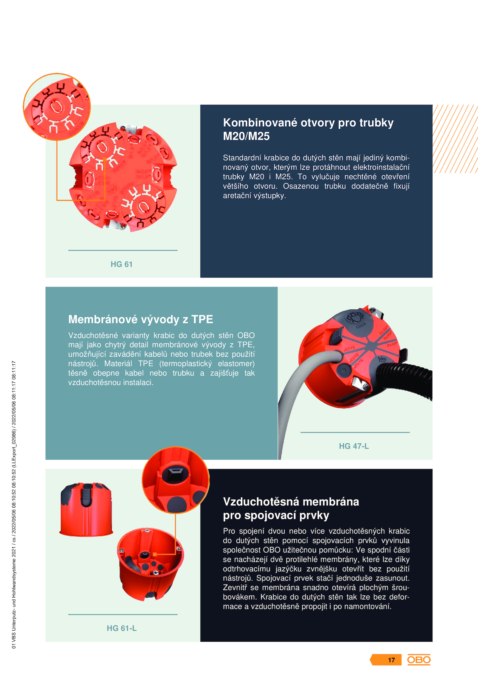 Vzduchotěsné varianty krabic dutých stěn OBO