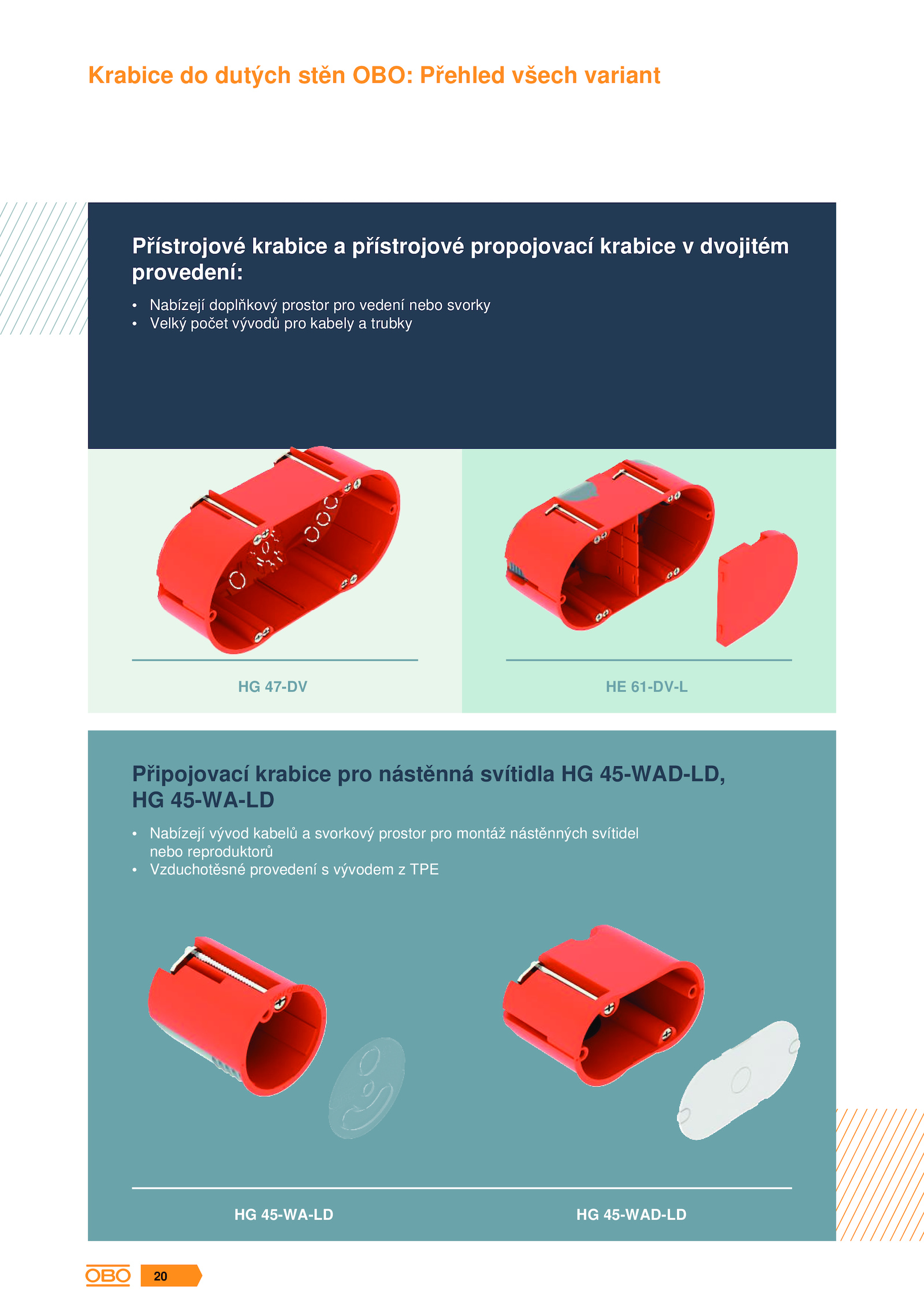 • Nabízejí vývod kabelů svorkový prostor pro montáž nástěnných svítidel