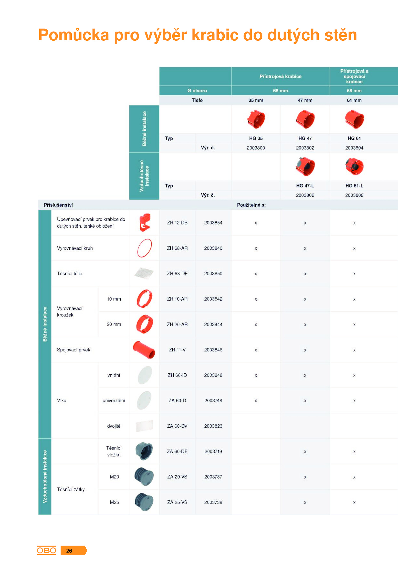 Pomůcka pro výběr krabic dutých stěn 26