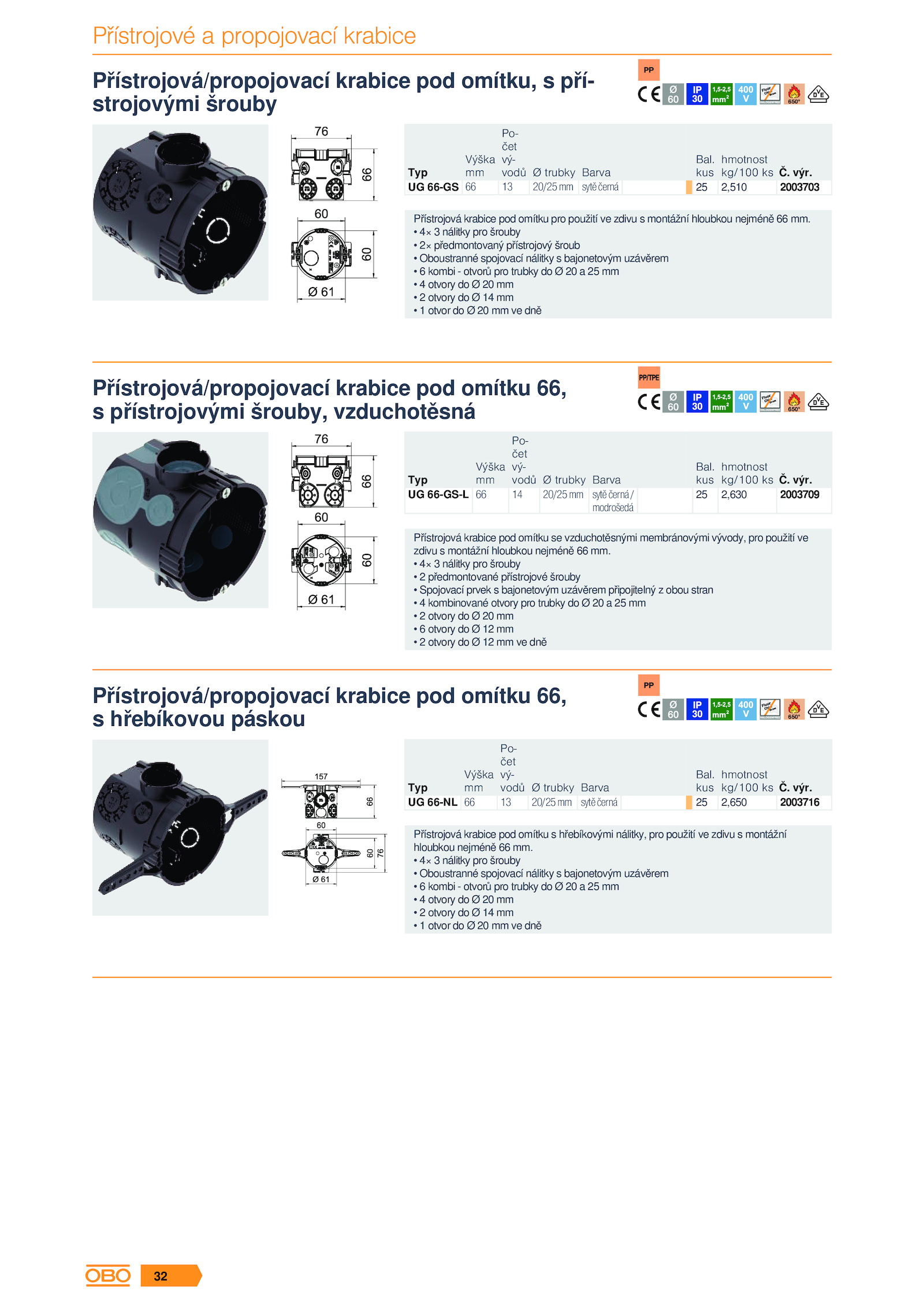 Přístrojová krabice pod omítku pro použití zdivu montážní hloubkou nejméně mm. výr.
