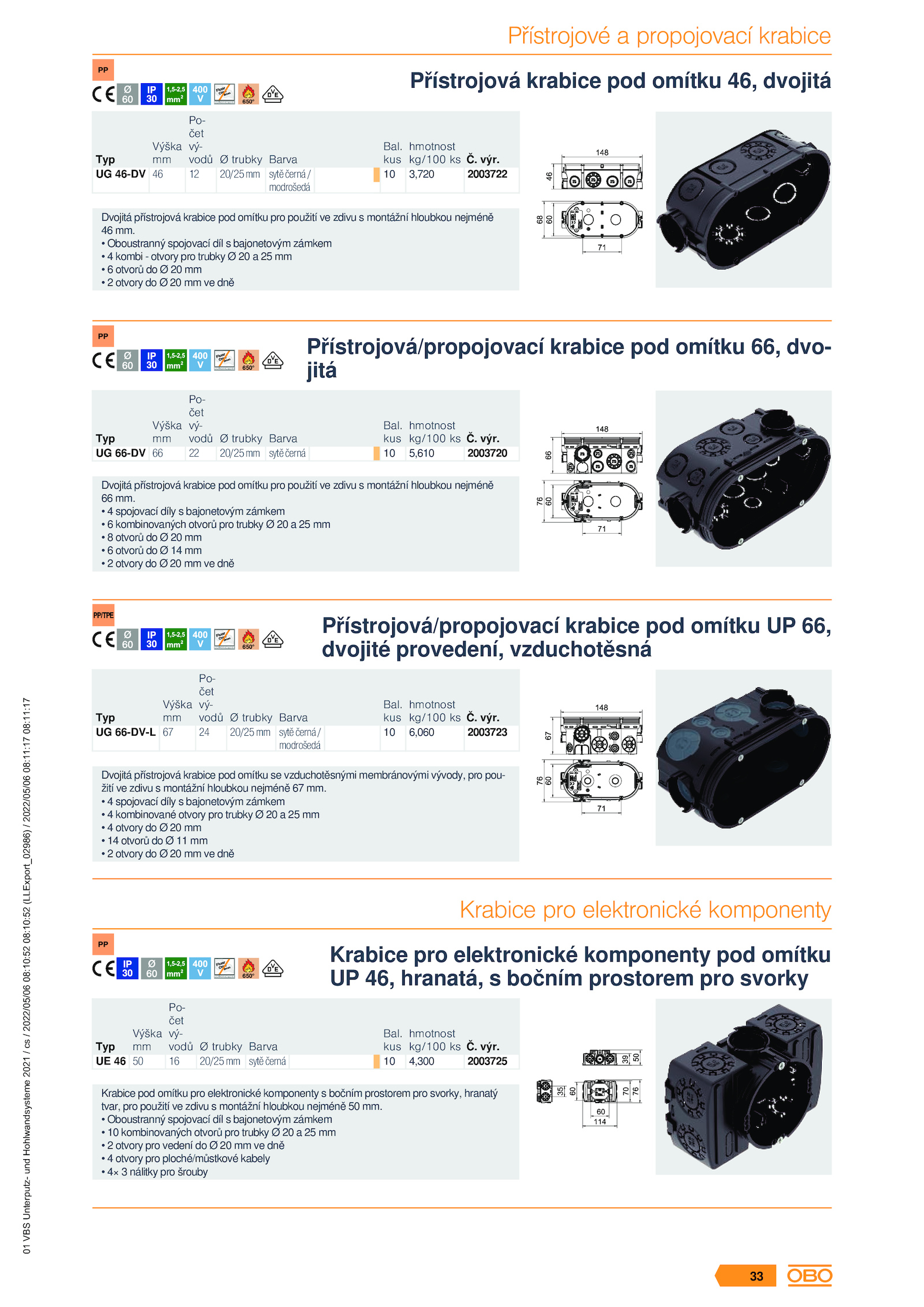 Přístrojová/propojovací krabice pod omítku 66, dvo-