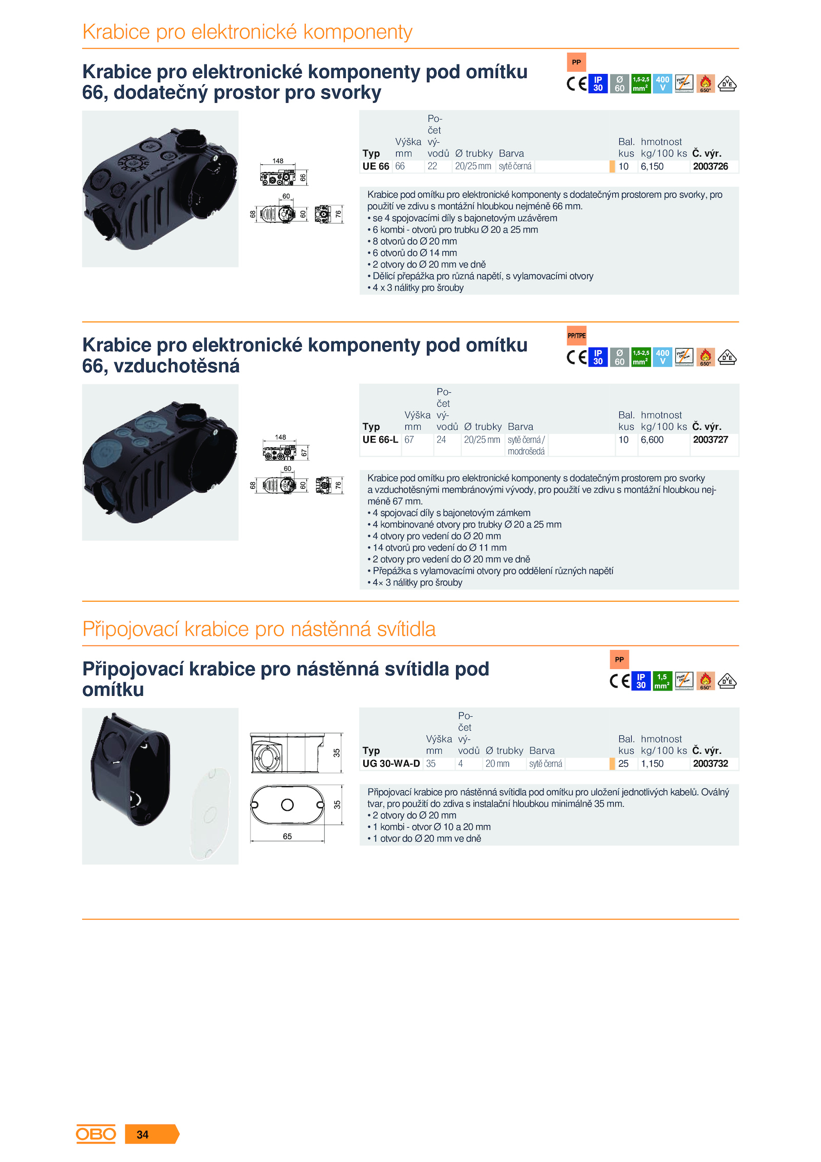 Připojovací krabice pro nástěnná svítidla pod omítku pro uložení jednotlivých kabelů. výr.Krabice pro elektronické komponenty