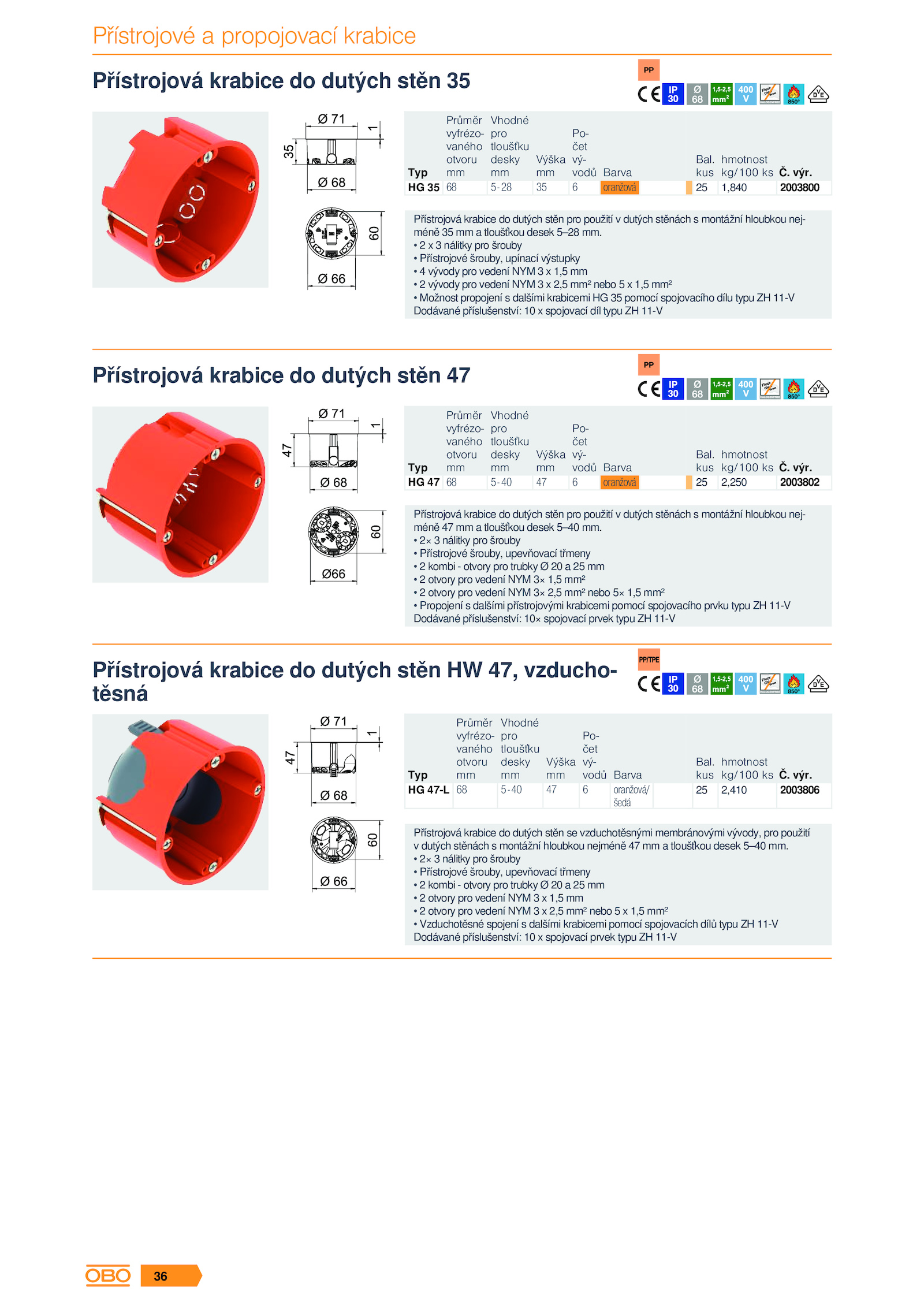 Přístrojová krabice dutých stěn pro použití dutých stěnách montážní hloubkou nej-